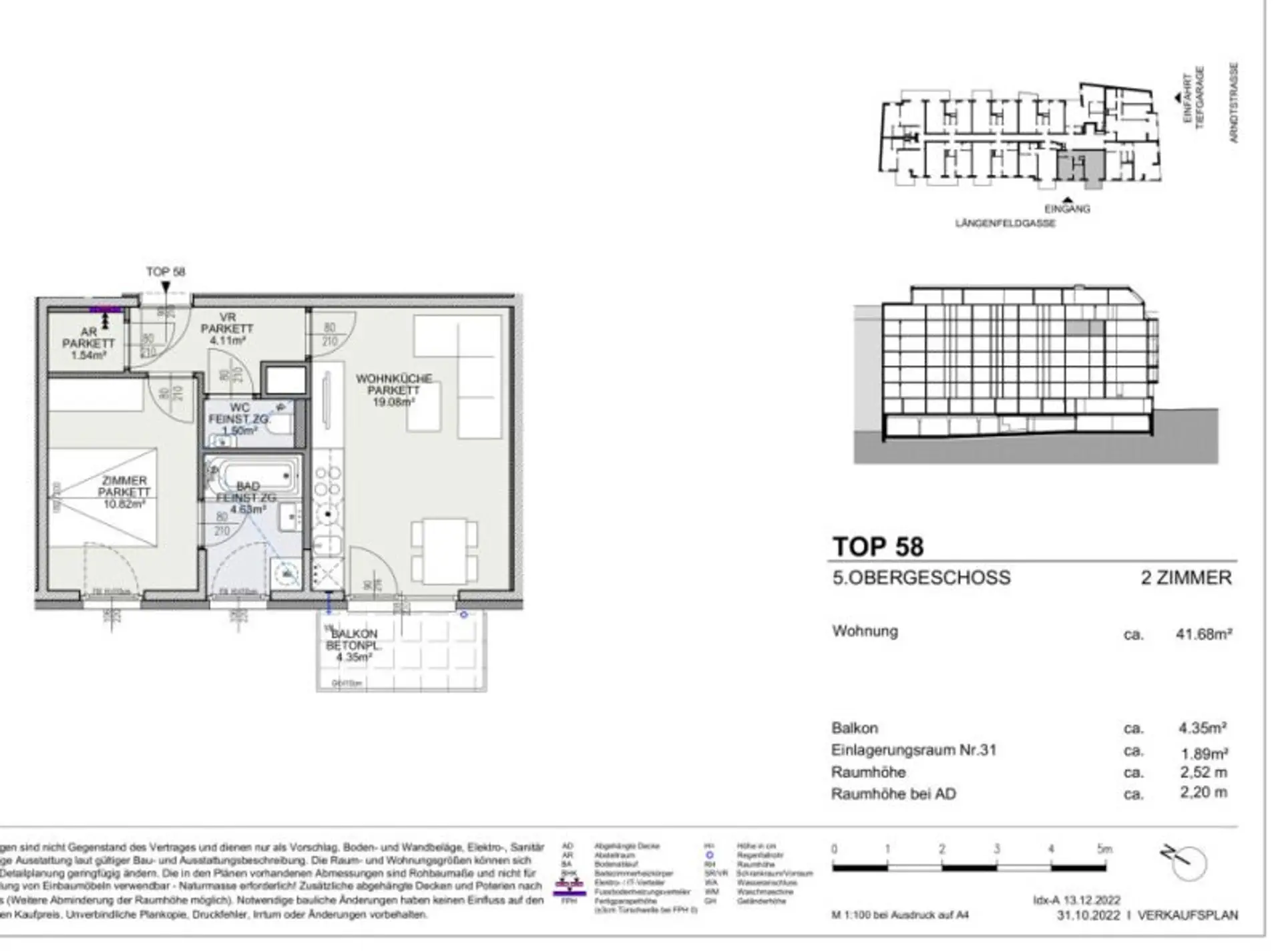 Wohnungsbeschreibung Top 58 im 5. Liftstock mit 41,68 m2 Wohnfläche + Balkon: