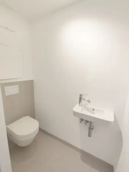 Die Wohnung ist mit hochwertigen Materialien ausgestattet, die ein Gefühl von Eleganz und Komfort vermitteln. Der schöne Parkettboden und die stilvollen Fliesen verleihen den Räumen eine warme Atmosphäre, während die Fußbodenheizung für wohlige Wärme sorgt. Die großzügige Wohnküche mit offener Gestaltung lädt dazu ein, kulinarische Köstlichkeiten zu kreieren und gesellige Abende zu verbringen. Das Schlafzimmer mit angrenzendem Bad ist extra zu gegehen. Entspannen Sie sich in Ihrem modernen Badezimmer, das mit einer Badewanne ausgestattet ist und somit einen perfekten Rückzugsort für entspannende Stunden bietet. Das separate WC ist mit einem Handwaschbecken ausgestattet. Auch ein praktischer Abstellraum steht zu Ihrer Verfügung.