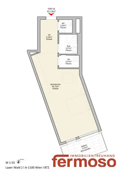 in attraktiver Lage am Laaer Wald 1 im 10. Bezirk erwartet Sie diese moderne 1-Zimmer-Wohnung mit ca. 41,13 m² Wohnfläche und einem Balkon mit ca. 7,21 m². Die Wohnung überzeugt durch eine durchdachte Raumaufteilung, helle Wohnbereiche und eine zeitgemäße Ausstattung – ideal für Singles, Pendler oder als Anlagewohnung.