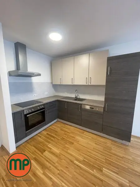 Die lichtdurchflutete Wohnküche ist mit einer voll ausgestatteten, modernen Küche versehen und bildet das Herzstück der Wohnung – ideal für gesellige Abende oder entspannte Stunden zu Hause.