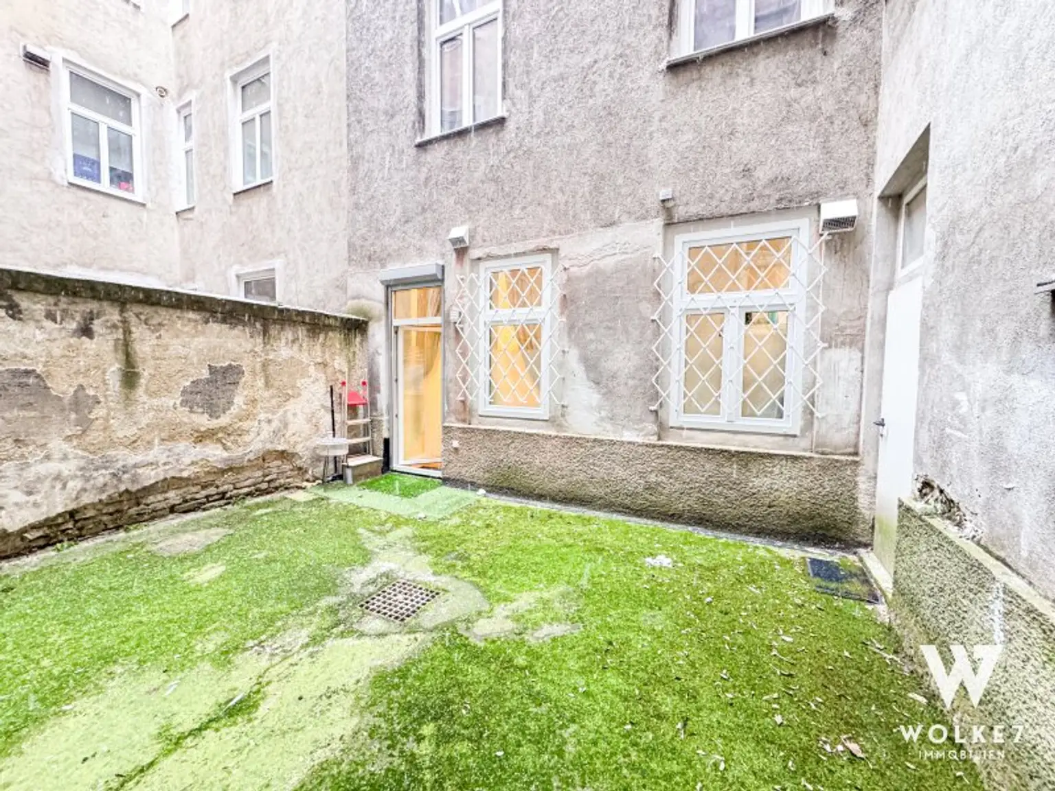 Die Wohnung verfügt über Schallschutzfenster sowie eine Terrassentür zum Innenhof, die für viel Ruhe und angenehmes Tageslicht sorgen. Eine moderne Einbauküche ist funktional und stilvoll ausgestattet. Das separate Wohn-Esszimmer besticht durch einen eleganten Parkettboden und bietet ausreichend Platz zum Wohnen und Entspannen.