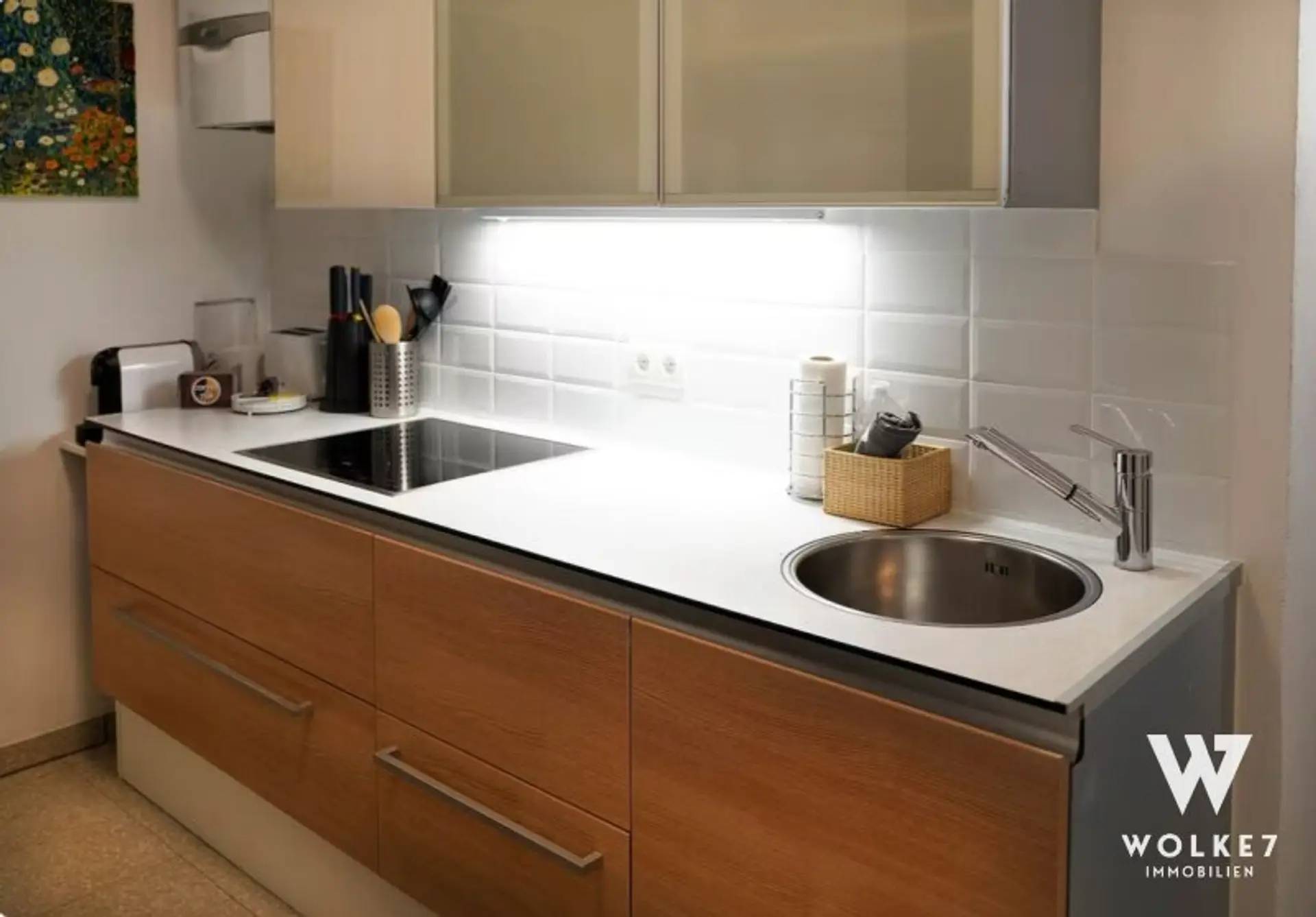 Die Wohnung verfügt über Schallschutzfenster sowie eine Terrassentür zum Innenhof, die für viel Ruhe und angenehmes Tageslicht sorgen. Eine moderne Einbauküche ist funktional und stilvoll ausgestattet. Das separate Wohn-Esszimmer besticht durch einen eleganten Parkettboden und bietet ausreichend Platz zum Wohnen und Entspannen.