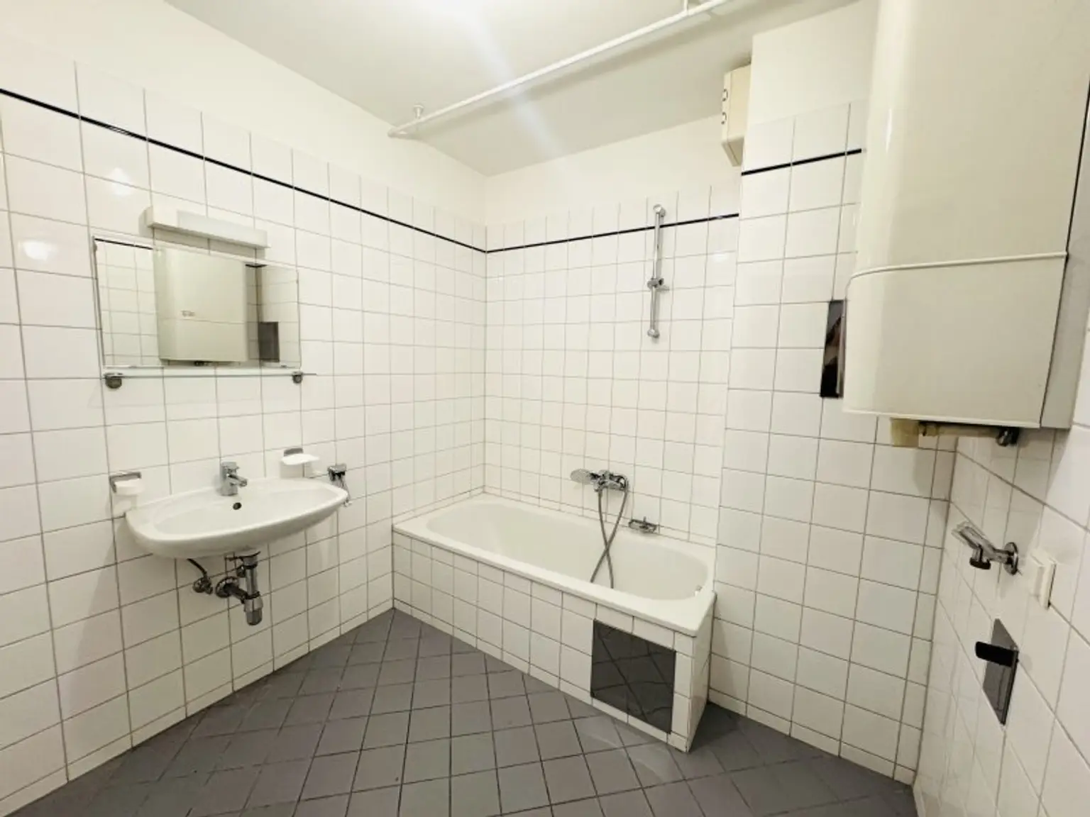 Vollständig ausgestattet: Bad mit komplett verfliesten Oberflächen, separates WC, Badewanne