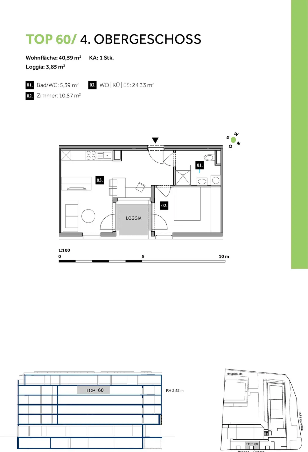 Bruttomiete inkl. BK-Akonto und Tiefgaragenparkplatz: € 670