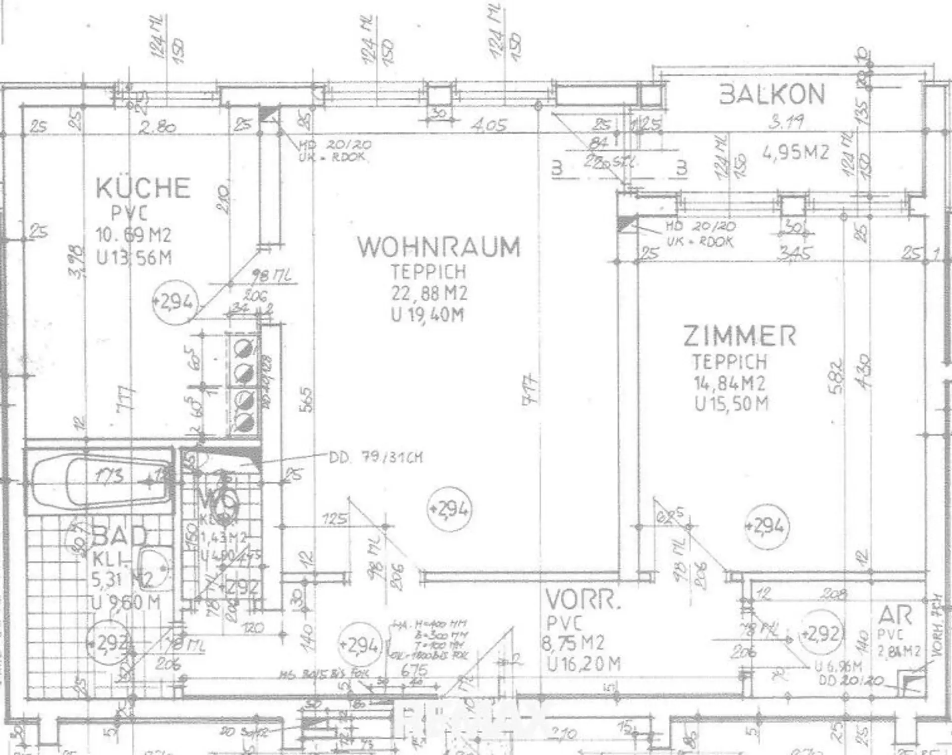 Die Betriebskosten der Wohnung (Gemeinde, Kanal, Wasser, Verwaltung, Rücklage, Heizung etc.) belaufen sich monatlich auf ca. 281,- Euro.