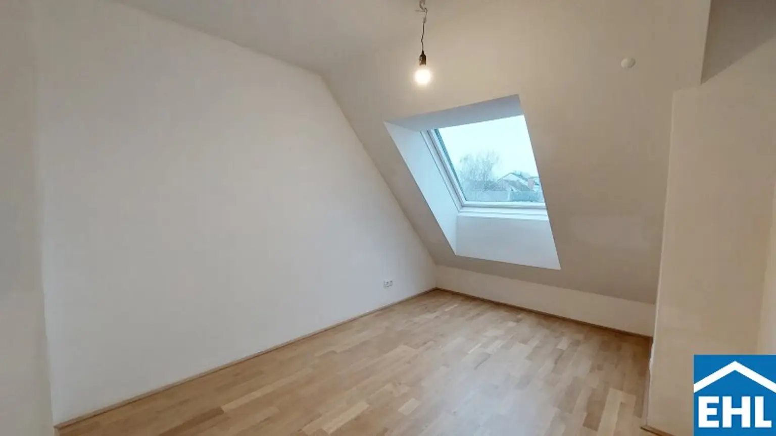 Die Wohnung befindet sich im 1.Dachgeschoß und verfügt über eine Wohnküche, zwei Schlafzimmer, ein Badezimmer mit Dusche, WC und Waschmaschinenanschluss, ein separates WC, sowie einen Vorraum. Zwei Balkone runden das Wohnerlebnis ab.