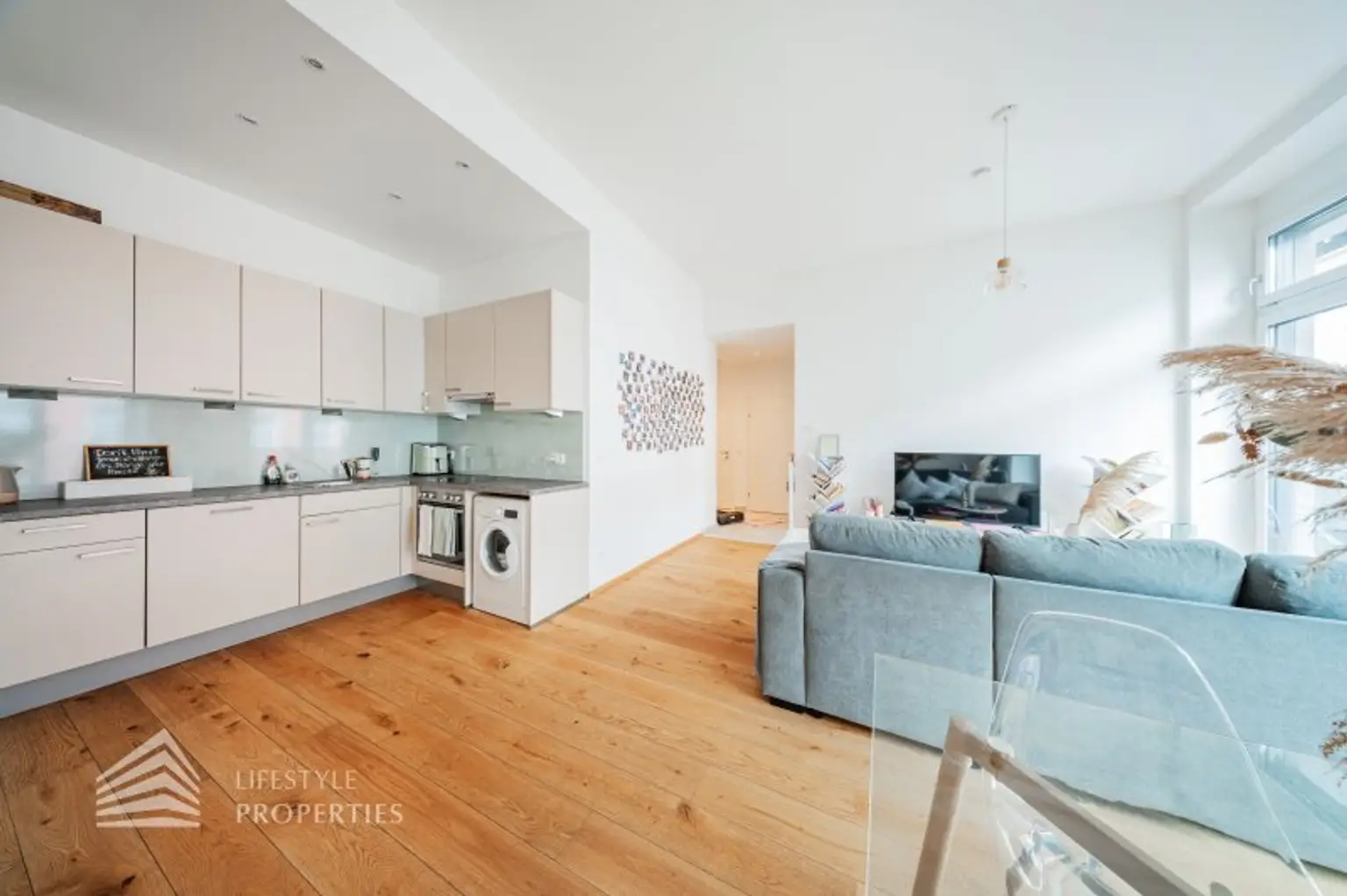 Sie betreten die Wohnung in einen kleinen Vorraum, welcher Platz für eine Garderobe bietet. Von hier aus gelangen Sie direkt in das Herzstück der Wohnung, in die große Wohnküche. Diese verfügt über eine moderne Einbauküche sowie genügend Platz für eine Couchlandschaft, einen Esstisch sowie weitere Möbel. Von hier gelangen Sie auf den Balkon. Das Schlafzimmer erreichen Sie über die Wohnküche. Es bietet ausreichend Platz für ein Doppelbett sowie einen Kleiderschrank. Das Badezimmer ist vom Vorraum aus begehbar und verfügt über ein Waschbecken, eine Dusche sowie einen Waschmaschinenanschluss. Das WC und der Abstellraum befinden sich ebenfalls im Vorraum.