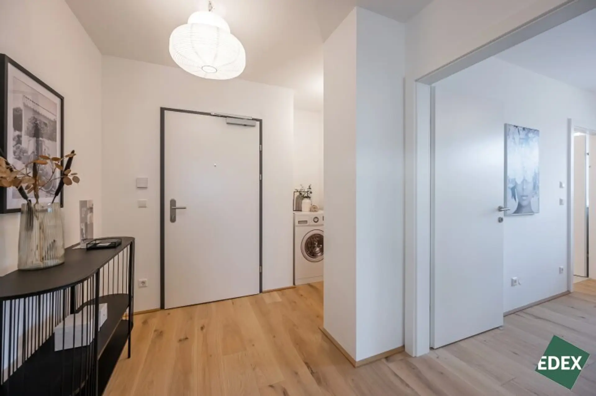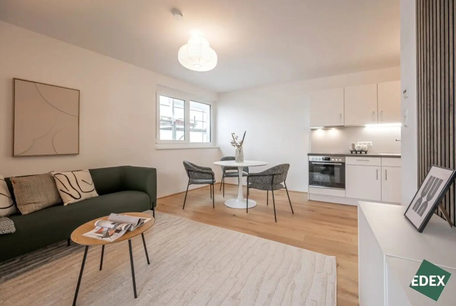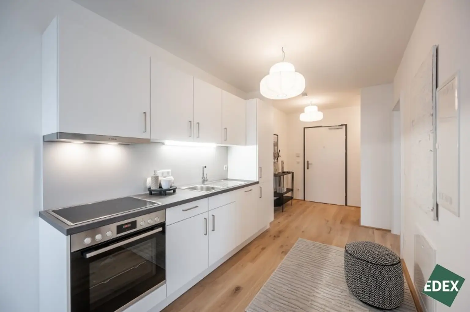 Zur Vermietung gelangt eine schöne 2-Zimmer-Wohnung in urbaner Atmosphäre. Die lichtdurchflutete Wohnung liegt straßenseitig im 3. Obergeschoß und verfügt über einen Vorraum, ein modernes Badezimmer, einen Abstellraum mit Waschmaschinenanschluss, ein separates WC, eine Wohnküche mit einer modernen, offenen Küche, ein Schlafzimmer, sowie einen Balkon. Der Außenbereich ist über das Wohnzimmer und das Schlafzimmer begehbar. Die Fenster sind mit einem außenliegenden Sonnenschutz versehen. Die Wohnräume sind mit hochwertigen Parkettböden und die Nassräume sind mit eleganten Fliesen ausgestattet. Im Haus befinden sich Kinderwagen- und Fahrradabstellräume, Paketboxen sowie eine Tiefgarage. Die Wohnungen stehen ab 01.03.2026 und werden auf 5 Jahre befristet vermietet.