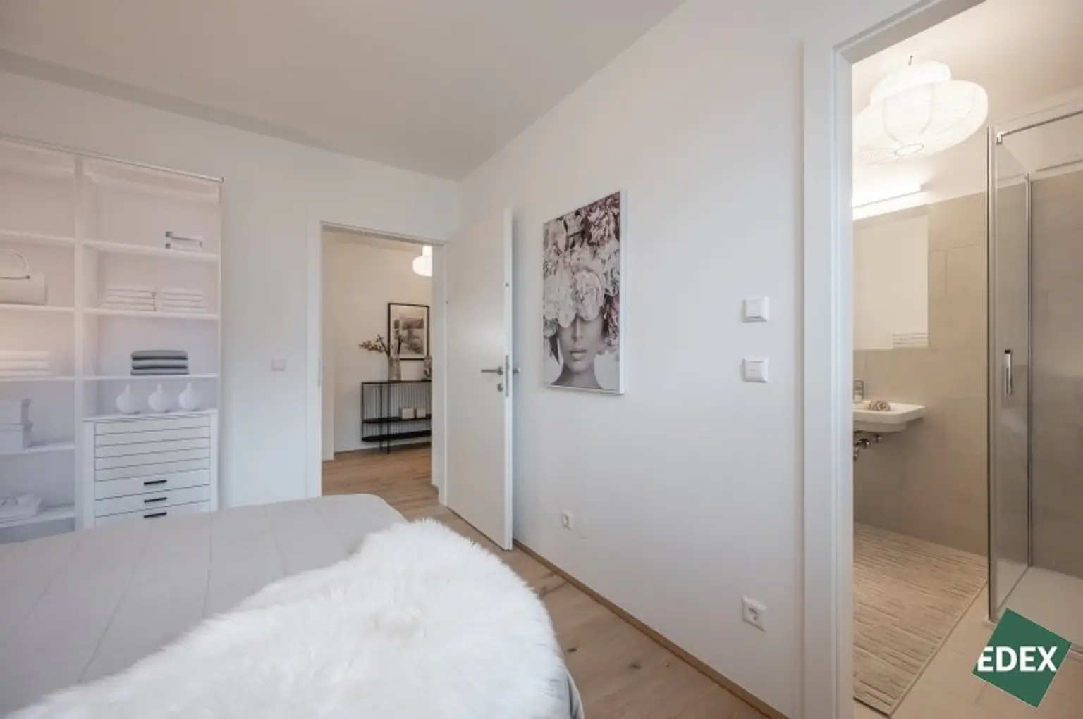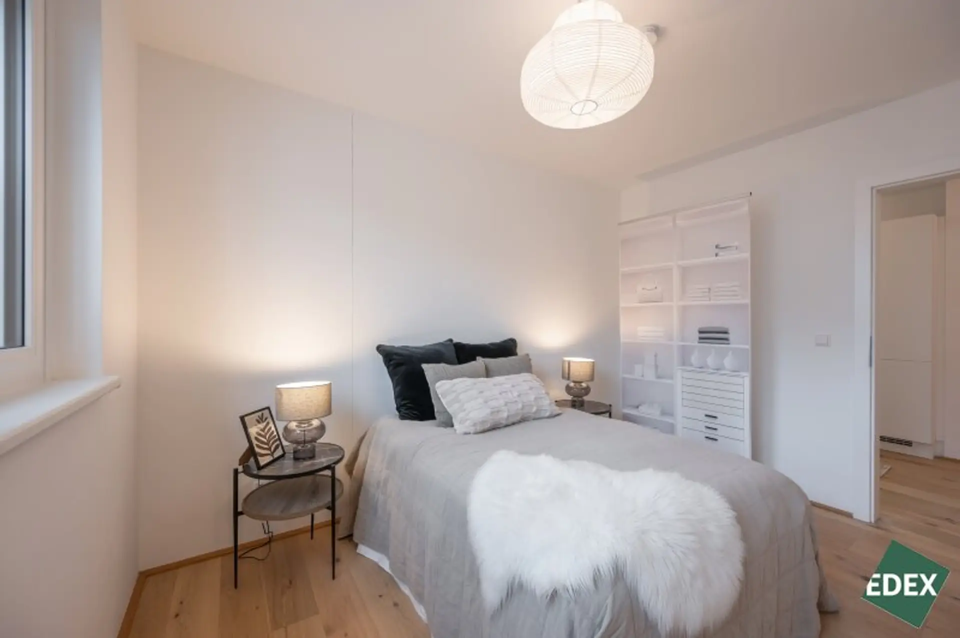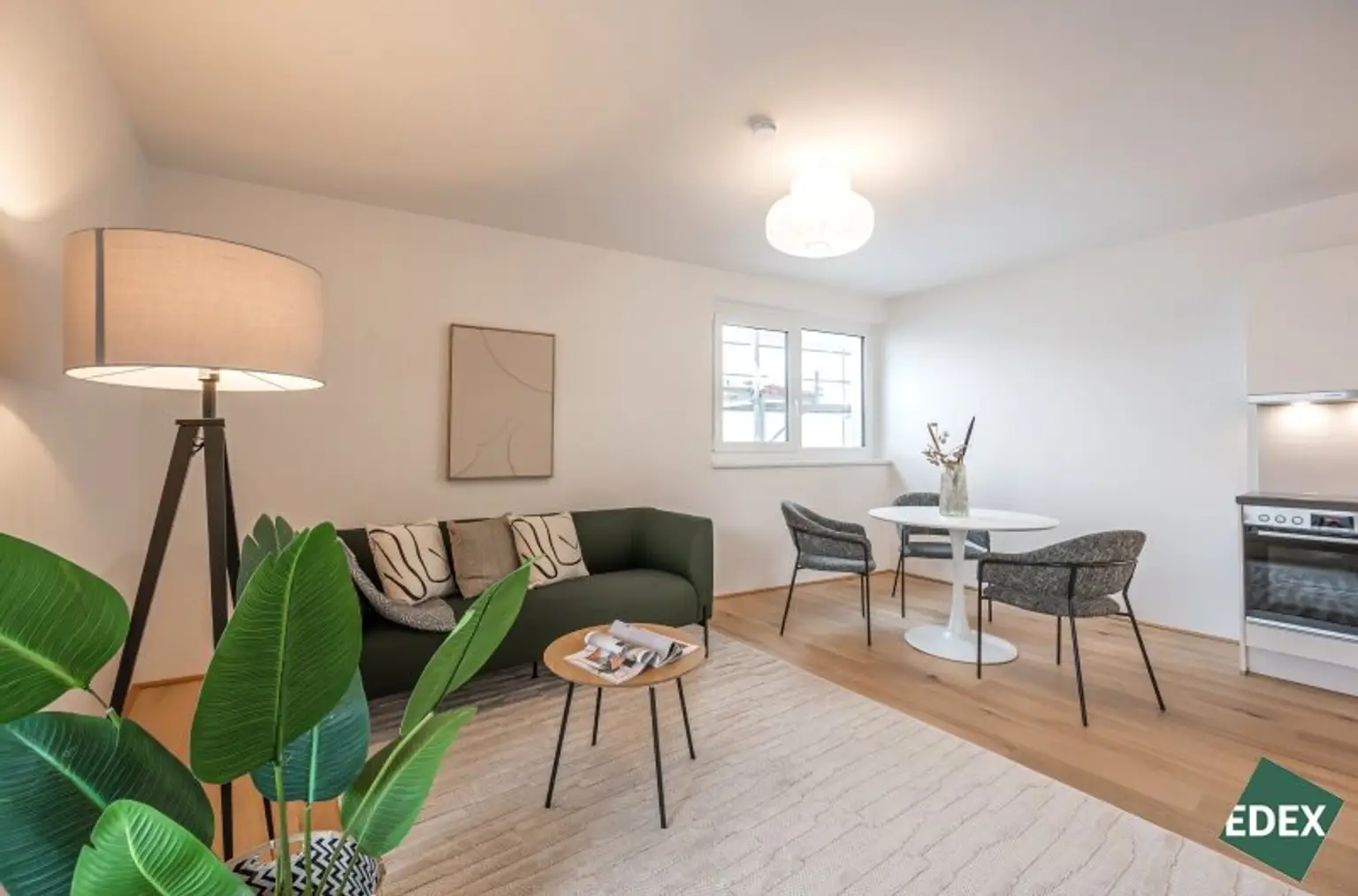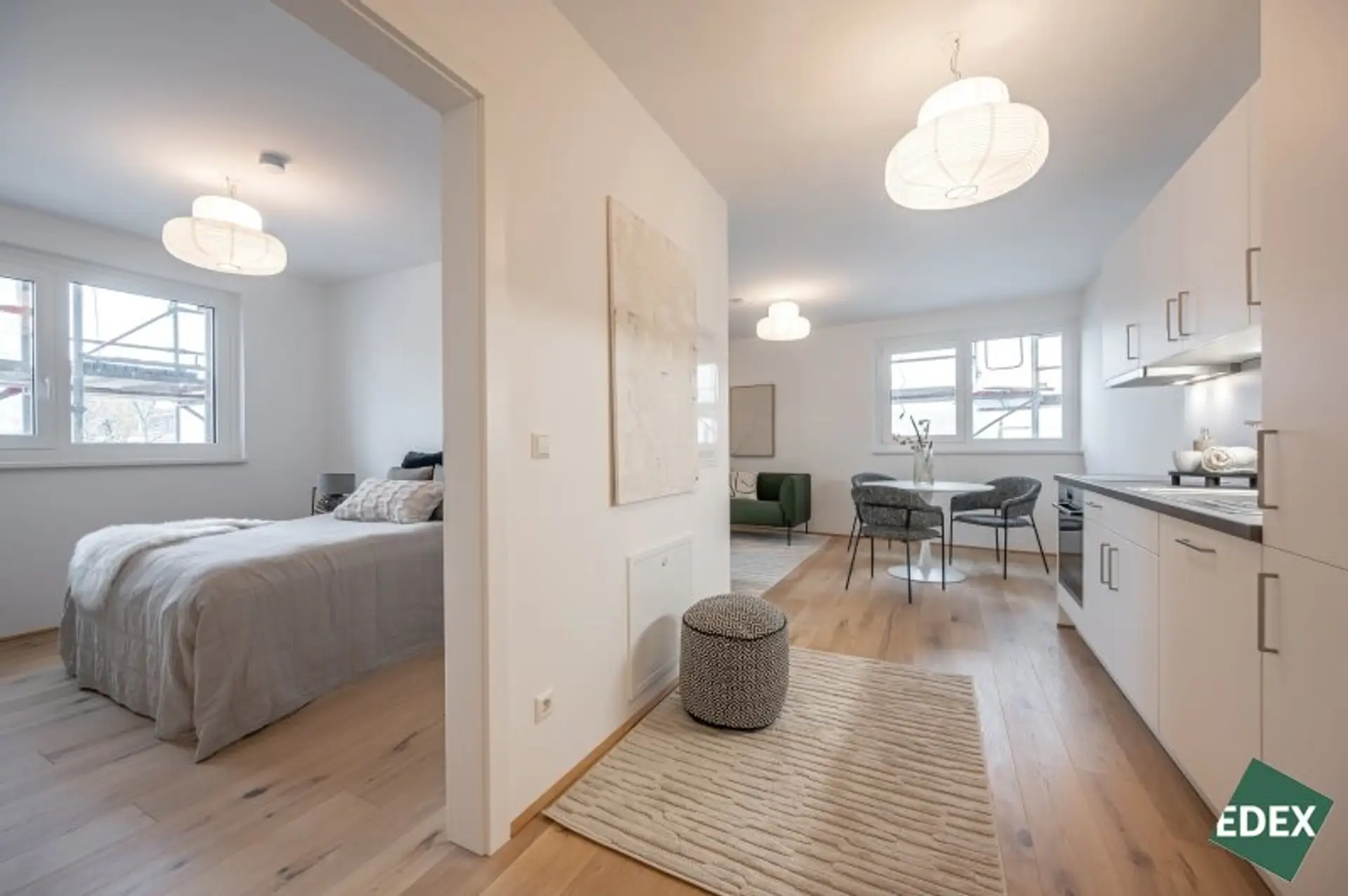 Zur Vermietung gelangt eine schöne 2-Zimmer-Wohnung in urbaner Atmosphäre. Die lichtdurchflutete Wohnung liegt straßenseitig im 3. Obergeschoß und verfügt über einen Vorraum, ein modernes Badezimmer, einen Abstellraum mit Waschmaschinenanschluss, ein separates WC, eine Wohnküche mit einer modernen, offenen Küche, ein Schlafzimmer, sowie einen Balkon. Der Außenbereich ist über das Wohnzimmer und das Schlafzimmer begehbar. Die Fenster sind mit einem außenliegenden Sonnenschutz versehen. Die Wohnräume sind mit hochwertigen Parkettböden und die Nassräume sind mit eleganten Fliesen ausgestattet. Im Haus befinden sich Kinderwagen- und Fahrradabstellräume, Paketboxen sowie eine Tiefgarage. Die Wohnungen stehen ab 01.03.2026 und werden auf 5 Jahre befristet vermietet.
