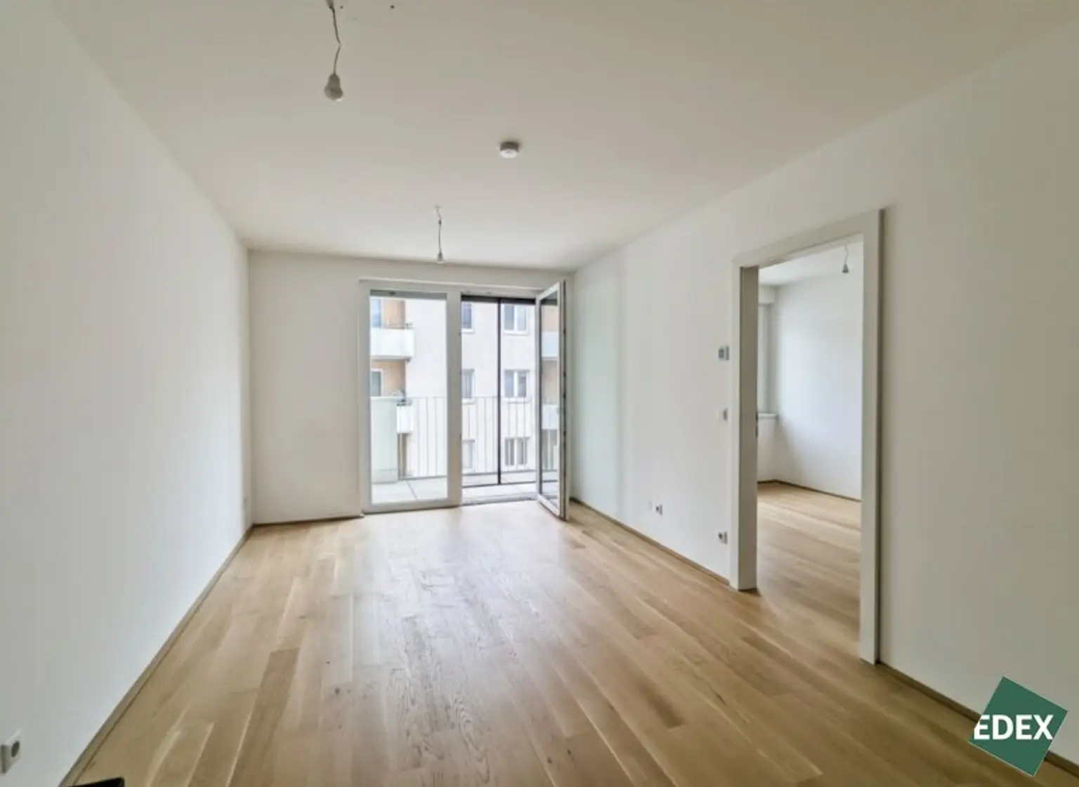 Diese schöne 2-Zimmer-Wohnung liegt im 4.Liftstock eines modernen Neubaus im 10. Wiener Gemeindebezirk. Die Wohnung verfügt über einen Eingangsbereich über den man in das Badzimmer und die Wohnküche mit Einbauküche inkl. aller Geräte (Kühlschrank, Tiefkühler, Backrohr und Kochfeld, Geschirrspüler) gelangt. Von der Wohnküche erreicht man einen westlich ausgerichteten Balkon sowie das ruhig gelegene Schlafzimmer, das viel Platz für einen Einbauschrank bietet. Der Balkon bietet Platz für eine Sitzgelegenheit und ist aufgrund seiner Ausrichtung ideal für eine eigenen Grünoase. Das Badezimmer ist mit einer Dusche, einem Handtuchwärmer und einem Waschbecken ausgestattet. Zudem gibt es einen großen Abstellraum inkl. einem Waschmaschinenanschluss. Das WC ist separat. Die Wohnräume sind mit einem Vollholzparkett, die Nassräume, der Vorraum sowie die Küche sind mit Fliesen versehen.