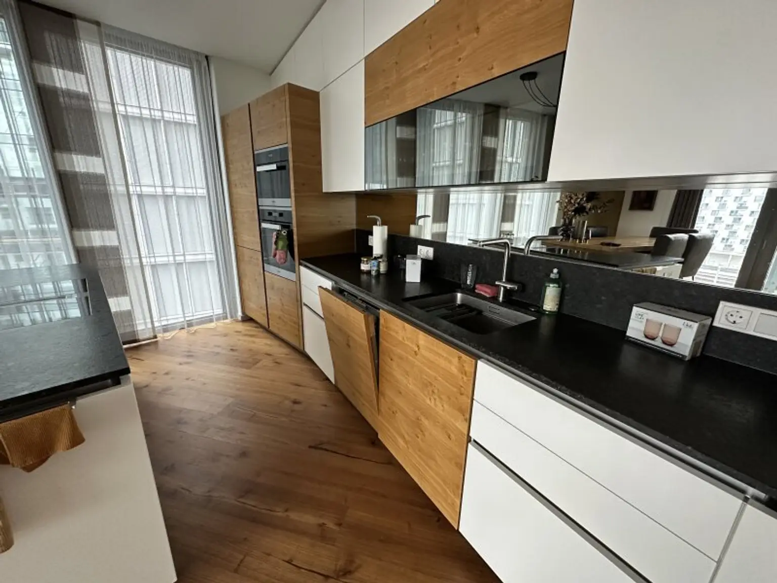 * raumhohe, französische Fenster (sehr helle Zimmer / viel Licht)