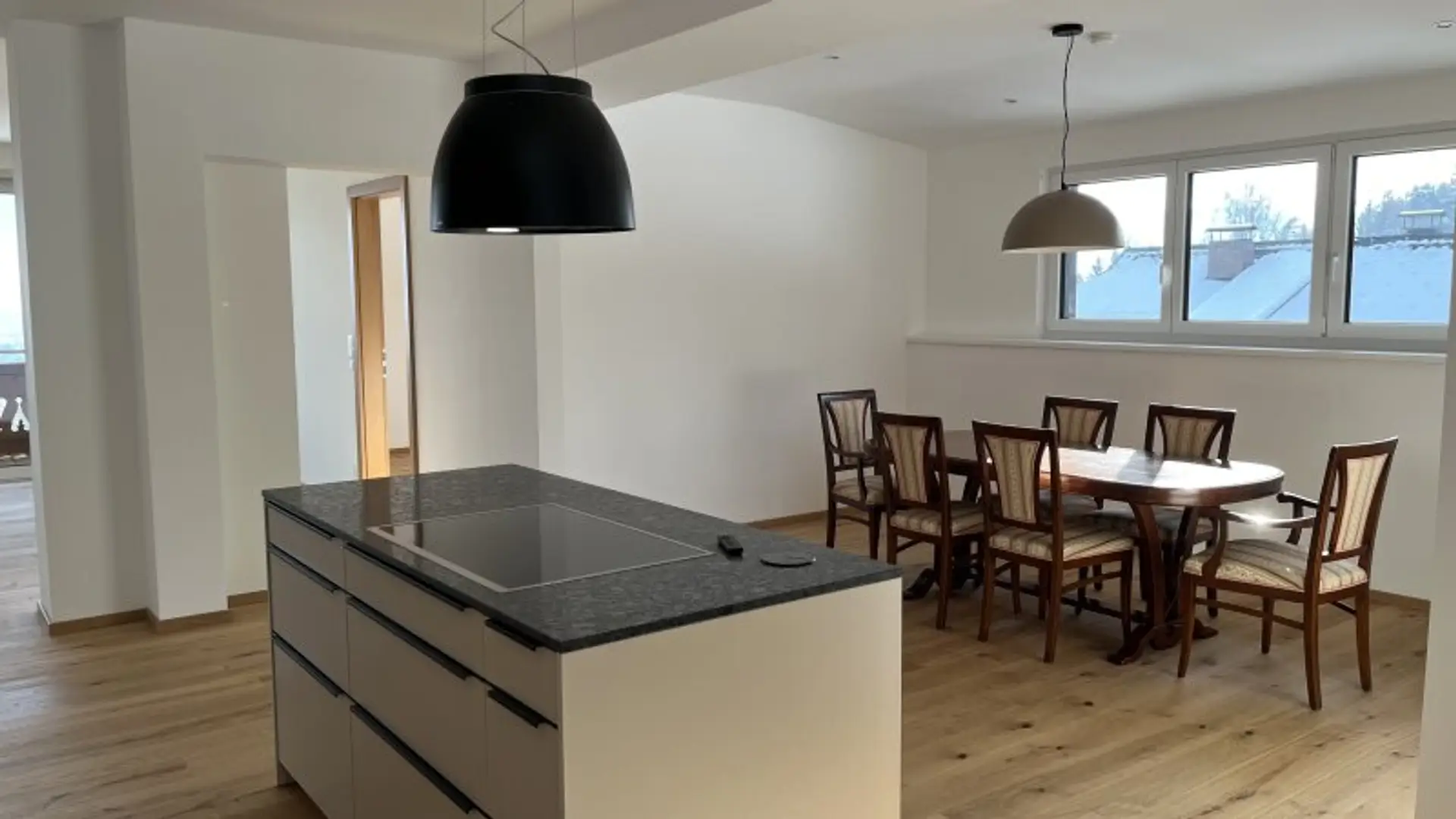 Die offene Raumgestaltung ermöglicht es Ihnen, Ihre Möbel harmonisch zu integrieren und die Wohnung nach Ihren Vorstellungen zu gestalten. Die hohen Decken und großen Fenster sorgen nicht nur für ein helles und freundliches Ambiente, sondern bieten auch einen atemberaubenden Blick.