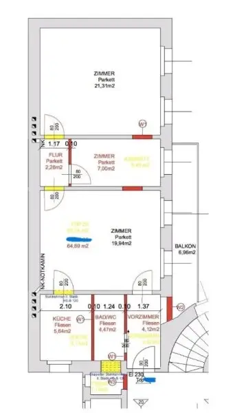 Im Vorraum, Wohn- und Schlafräumen wurden qualitative, moderne Fliesen verlegt sowie in den Nassräume und Küche. Die Küche ist komplett eingerichtet. Ein Kellerabteil ist der Wohnung zugeordnet.
