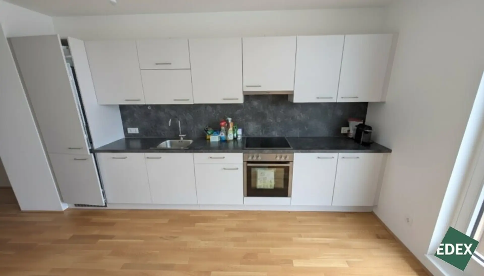 Der großzügige Wohn-/Essbereich mit offener Küche bildet das Herzstück der Wohnung und bietet direkten Zugang zur weitläufigen Terrasse, die für eine angenehme Freifläche und hohen Wohnkomfort sorgt.