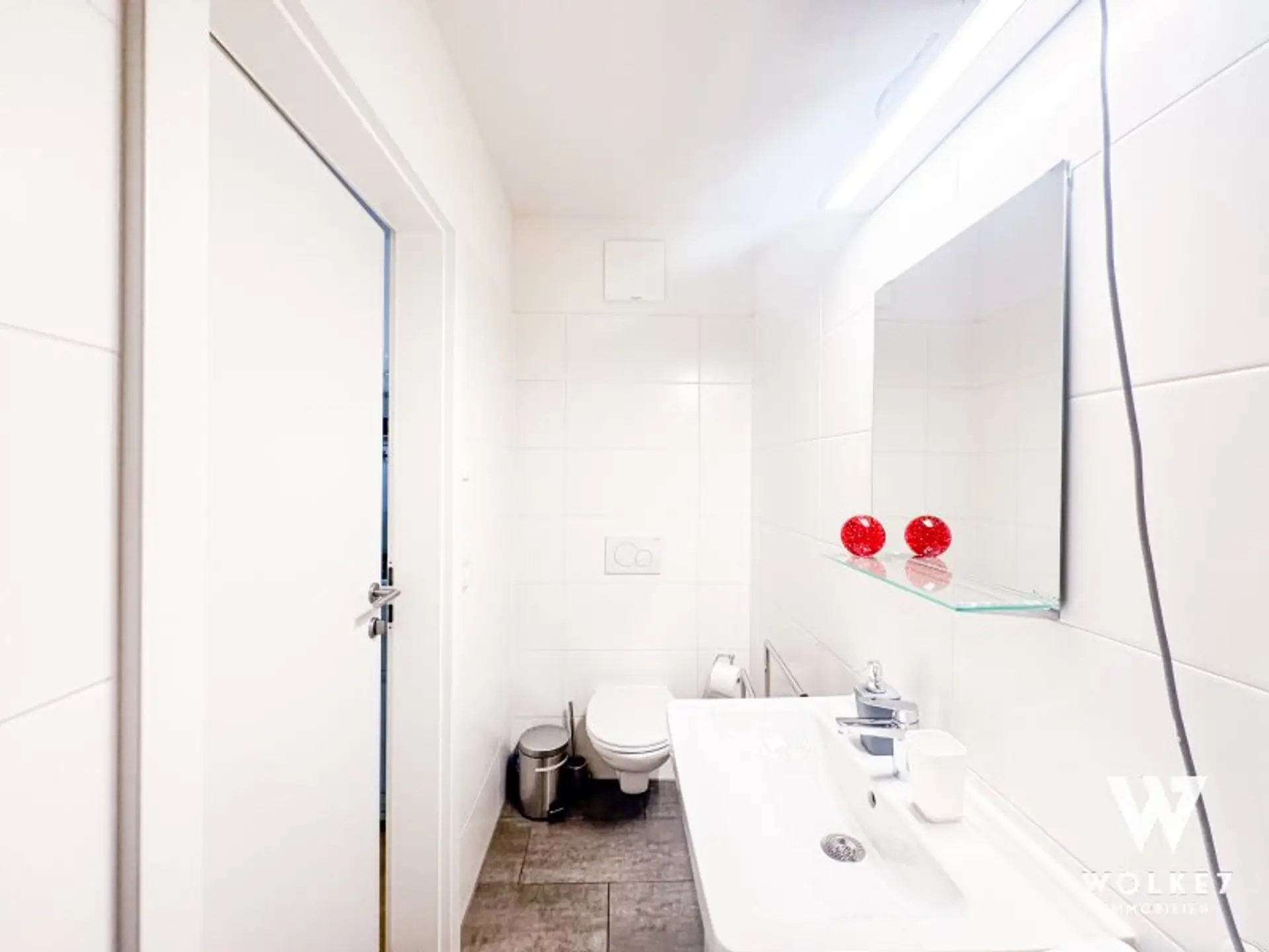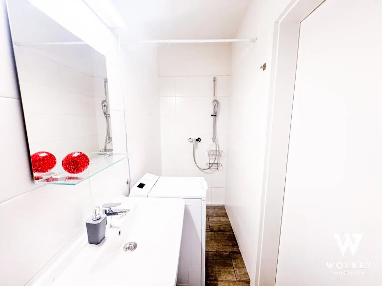 Das modern gestaltete Badezimmer ist mit Dusche und WC funktional ausgestattet. Ergänzend steht ein ca. 1 m² großes Kellerabteil zur Verfügung, das zusätzlichen Stauraum bietet.