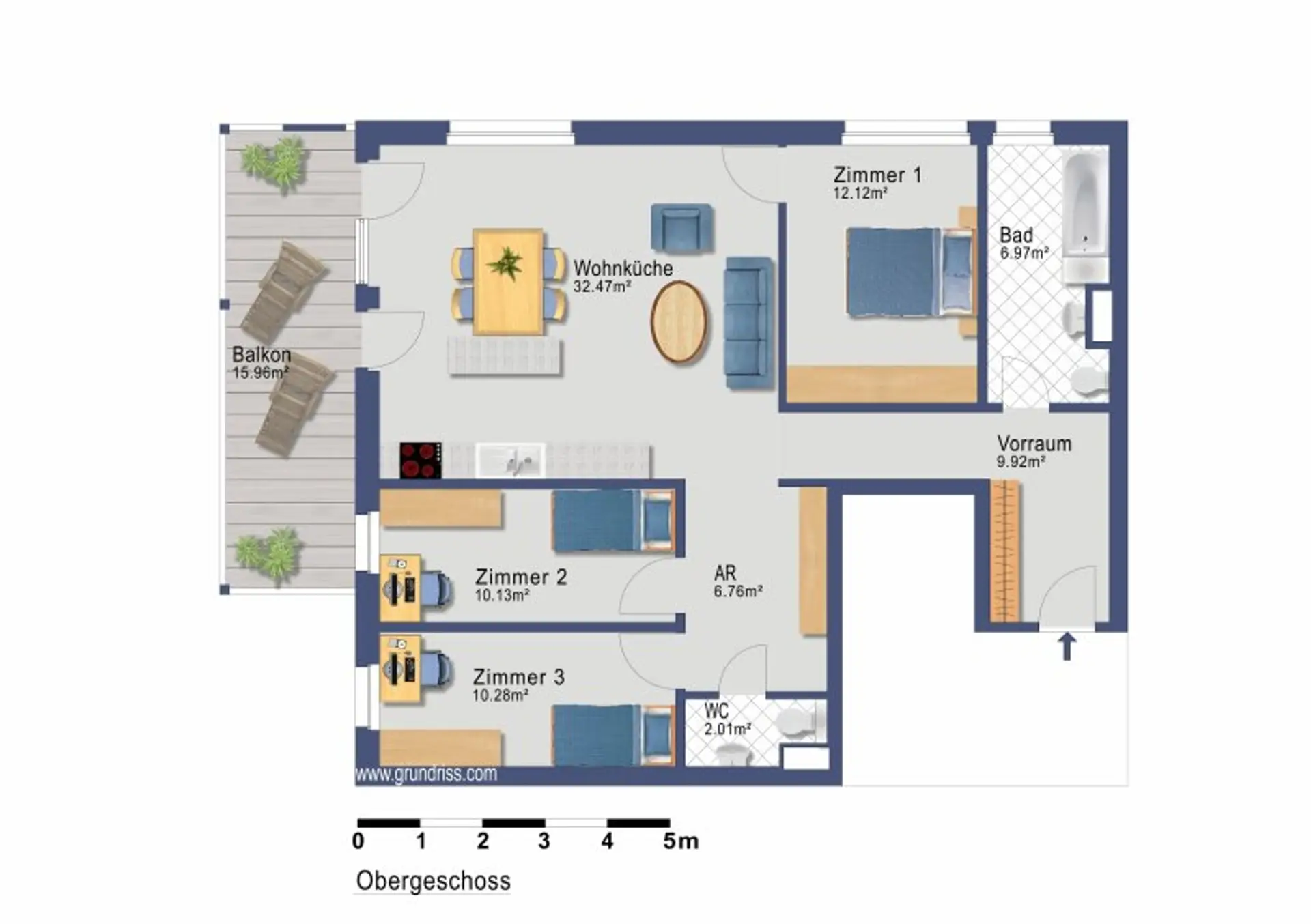 Großzügige private Freiflächen (Garten, Balkon oder Terrasse)