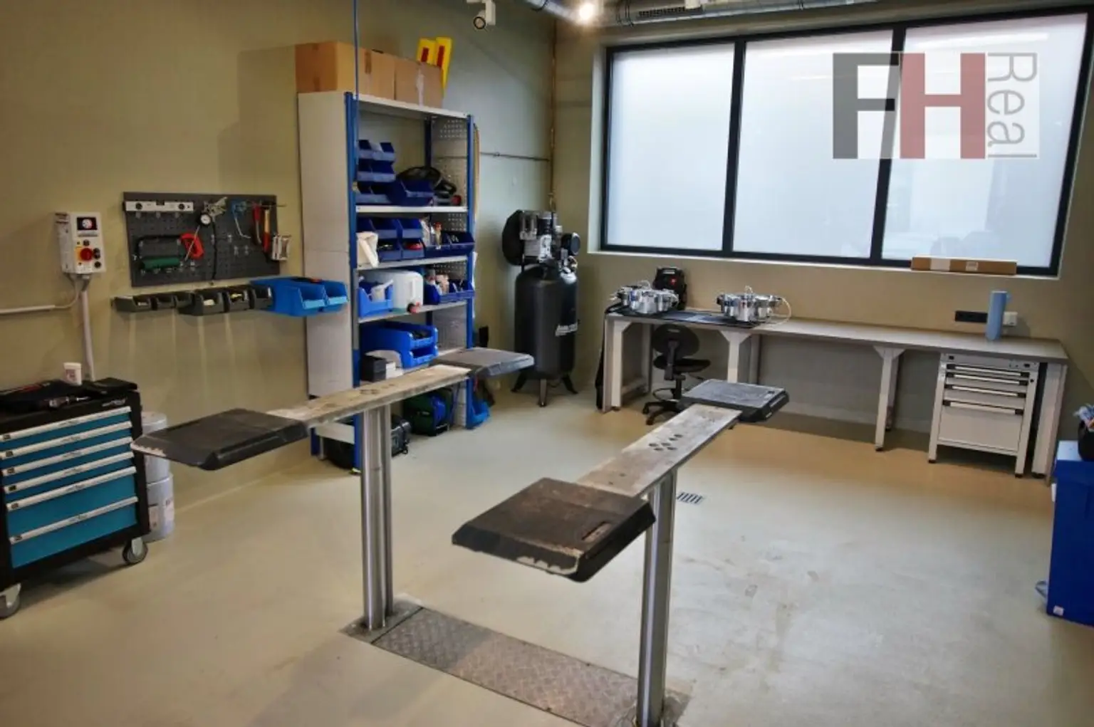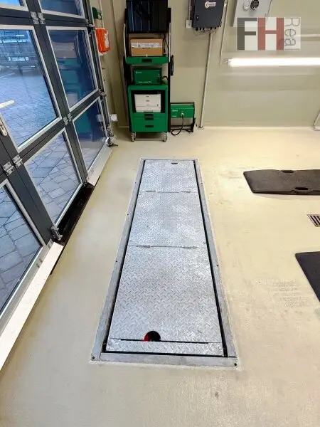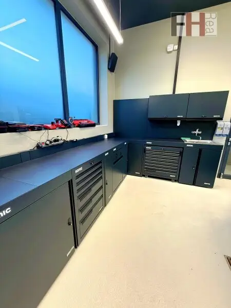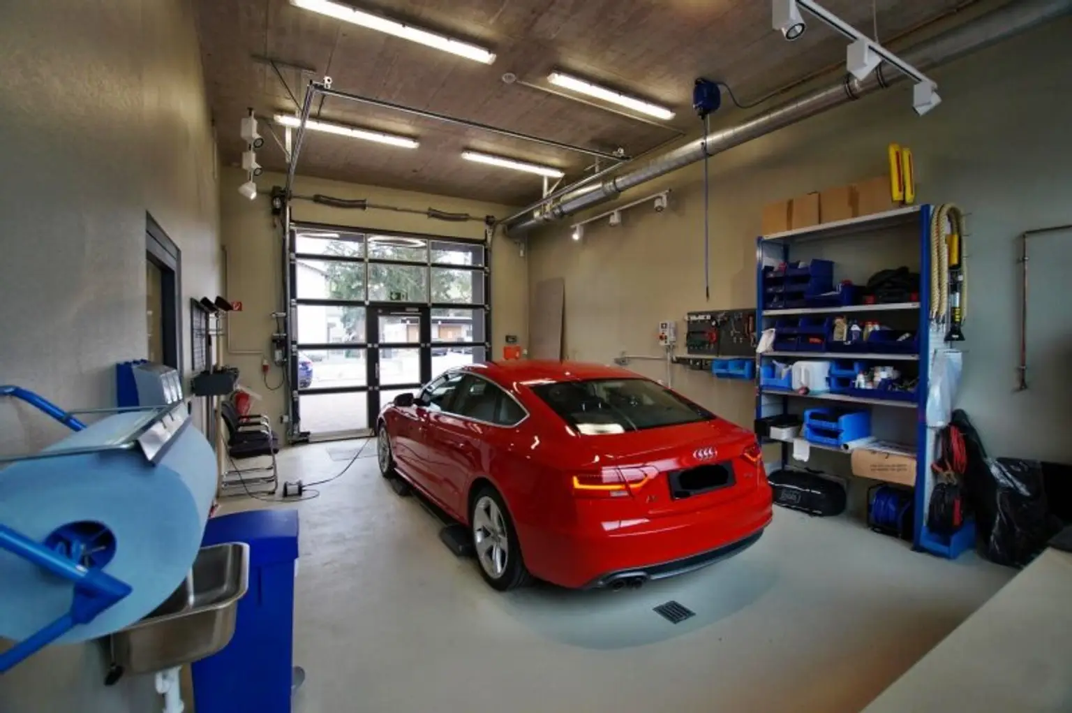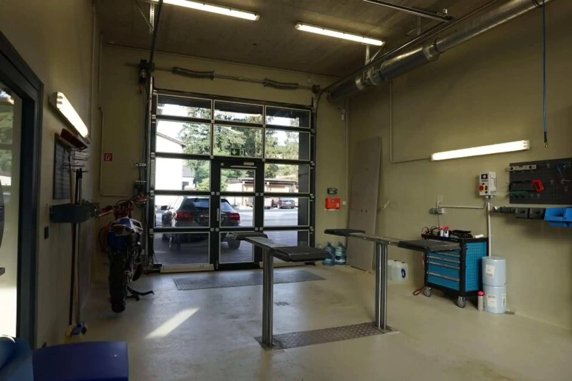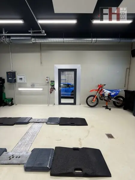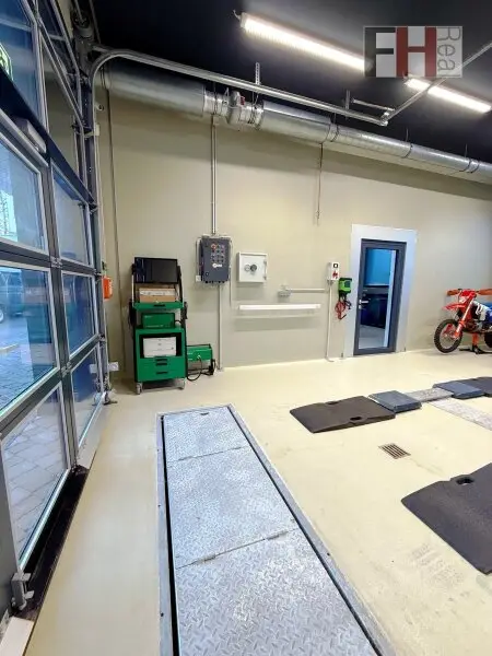 Die Grundausstattung der Werkstatt läßt keine Wünsche offen, hervorzuheben sind unter anderem die Niederflurhebebühnen, ein Rollenbremsenprüfstand, den Kombiabgastester, das Scheinwerfereinstellgerät, eine Abluftanlage, eine Druckluftanlage, Ölabscheider, Sektionaltore mit Tür und die Bodenheizung, welche effizient durch eine moderne Luftwärmepumpe betrieben wird. Die Ausstattung entspricht grundlegend einer KFZ-Werkstatt auch zur §57-Überprüfung.