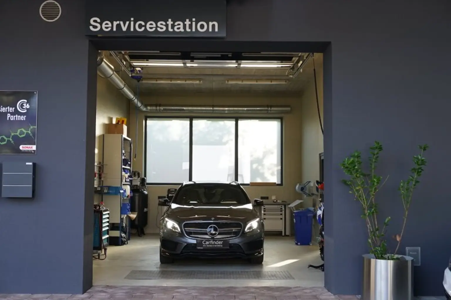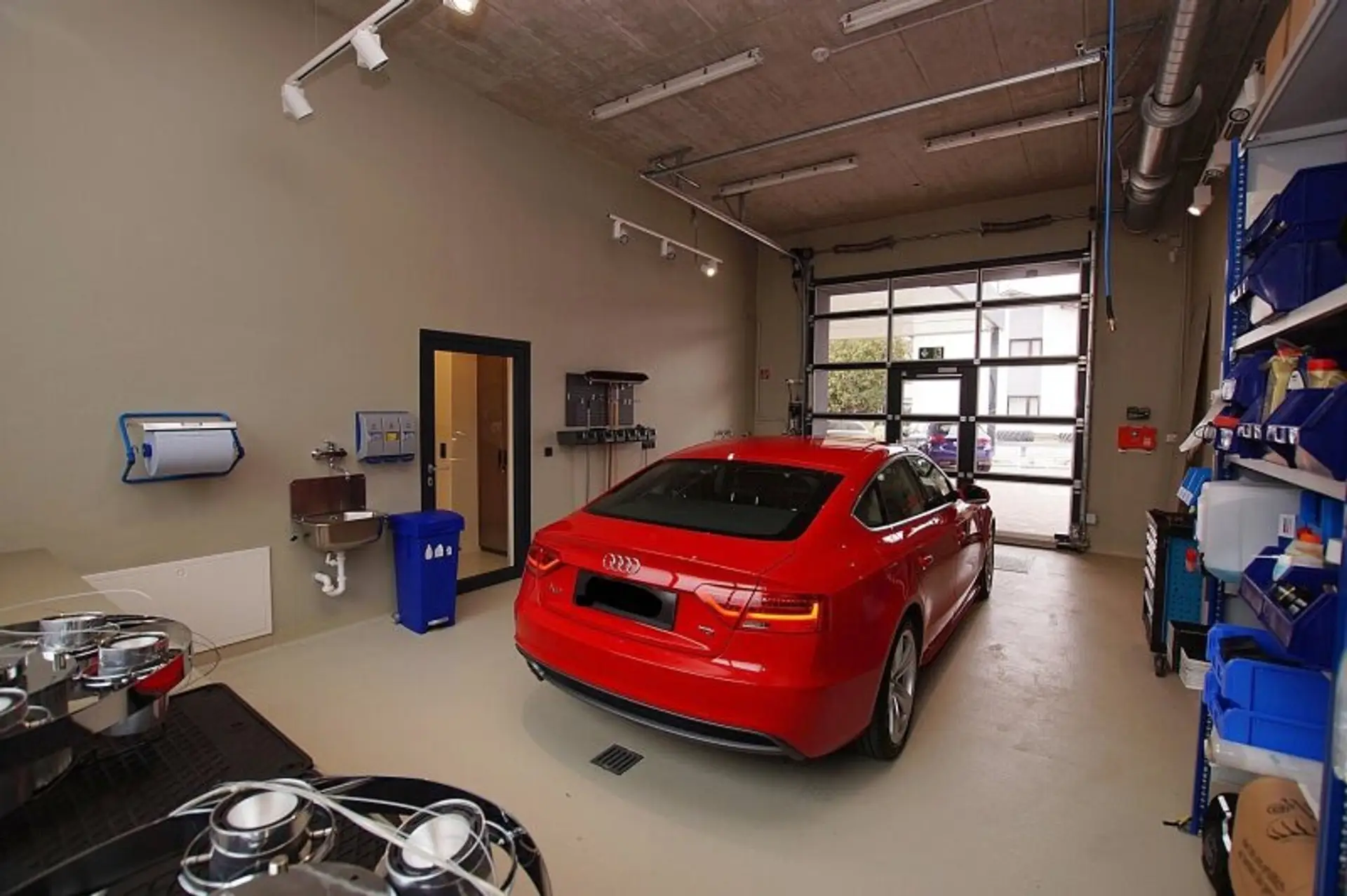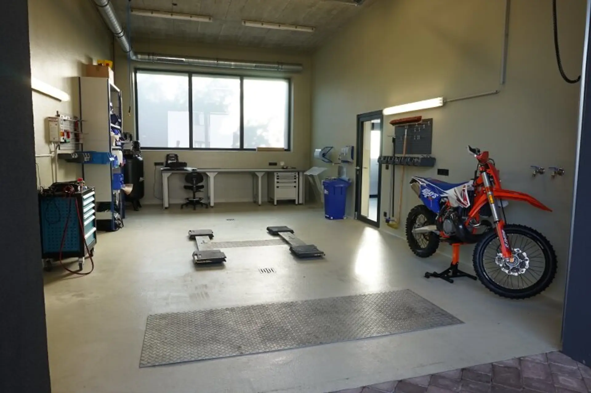 Die Grundausstattung der Werkstatt läßt keine Wünsche offen, hervorzuheben sind unter anderem die Niederflurhebebühnen, ein Rollenbremsenprüfstand, den Kombiabgastester, das Scheinwerfereinstellgerät, eine Abluftanlage, eine Druckluftanlage, Ölabscheider, Sektionaltore mit Tür und die Bodenheizung, welche effizient durch eine moderne Luftwärmepumpe betrieben wird. Die Ausstattung entspricht grundlegend einer KFZ-Werkstatt auch zur §57-Überprüfung.