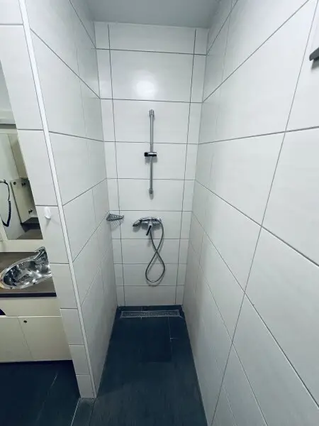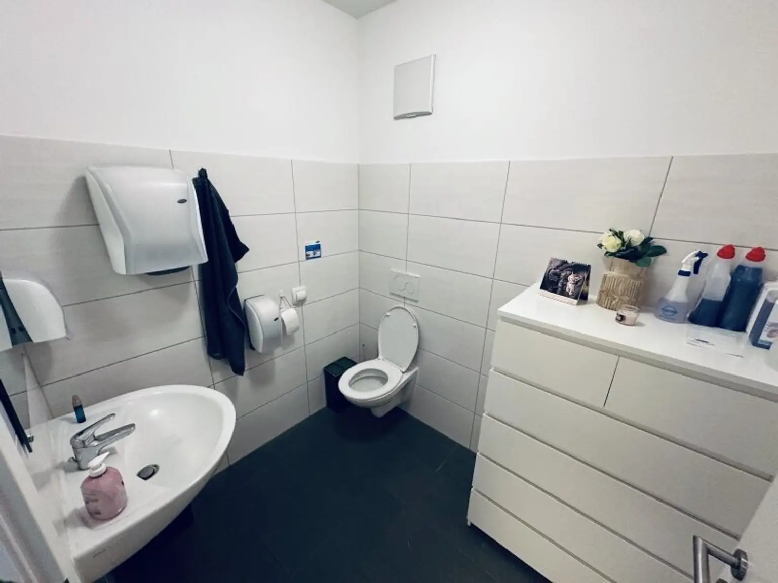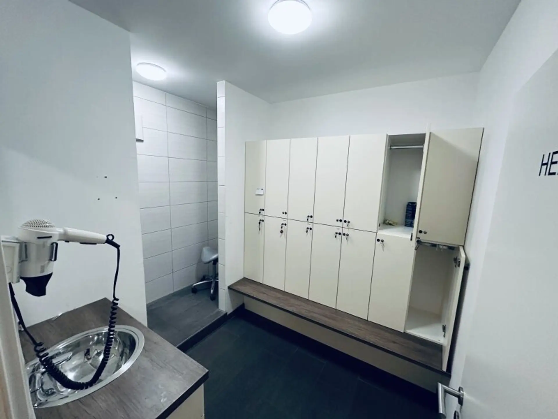 Die Fläche wurde zuletzt als Fitness- bzw. Gesundheitsstudio genutzt und verfügt daher über bereits eingerichtete, hochwertige Sanitär- und Umkleideräumlichkeiten. Alle Bereiche präsentieren sich in gepflegtem, neuwertigem Zustand.