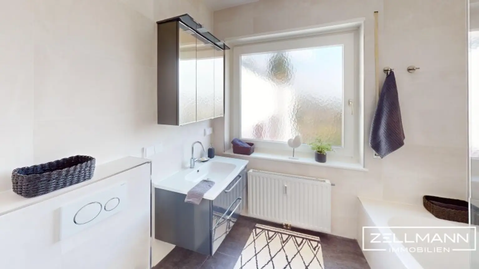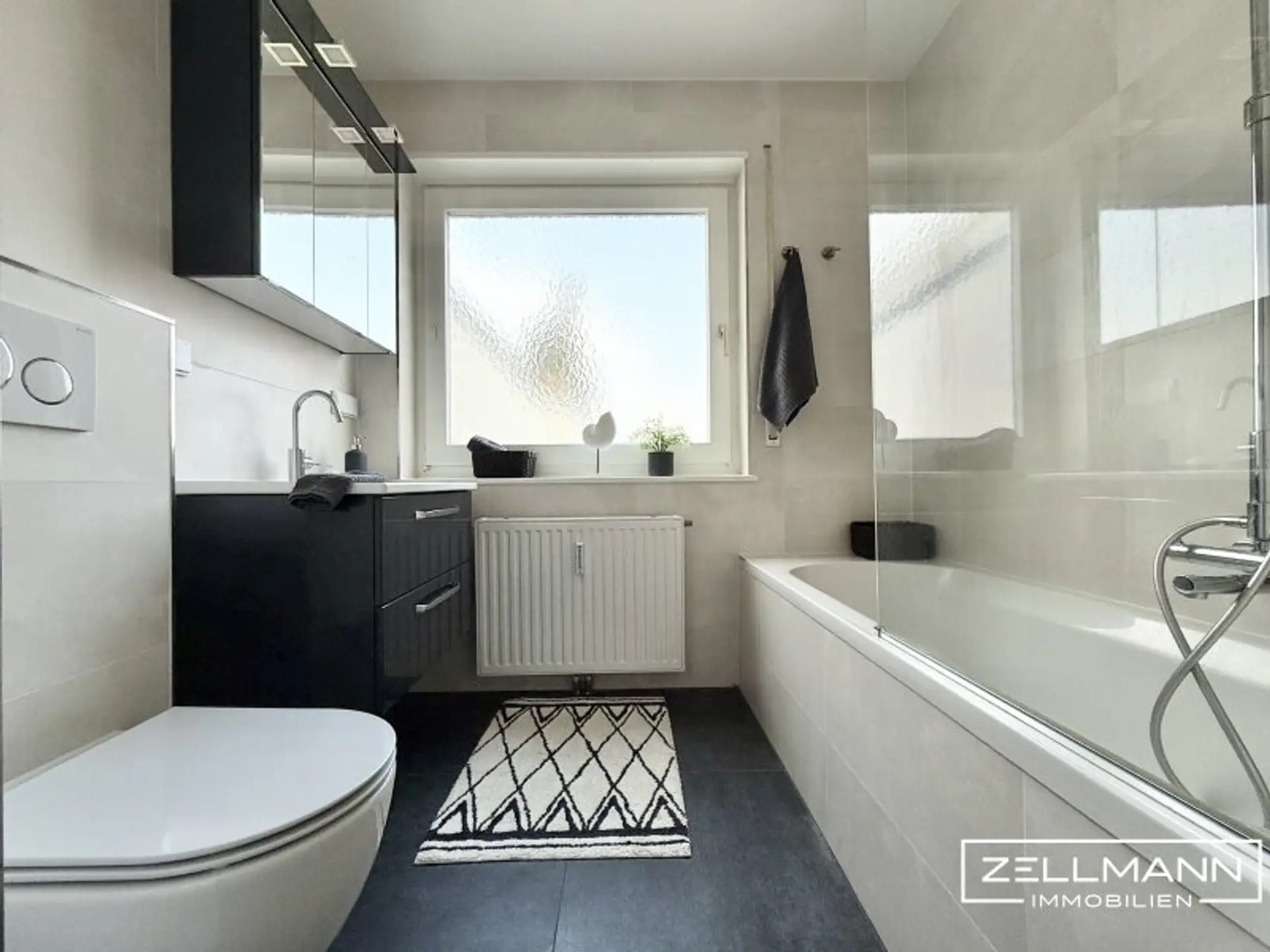 Modern ausgestattetes Badezimmer mit Tageslicht