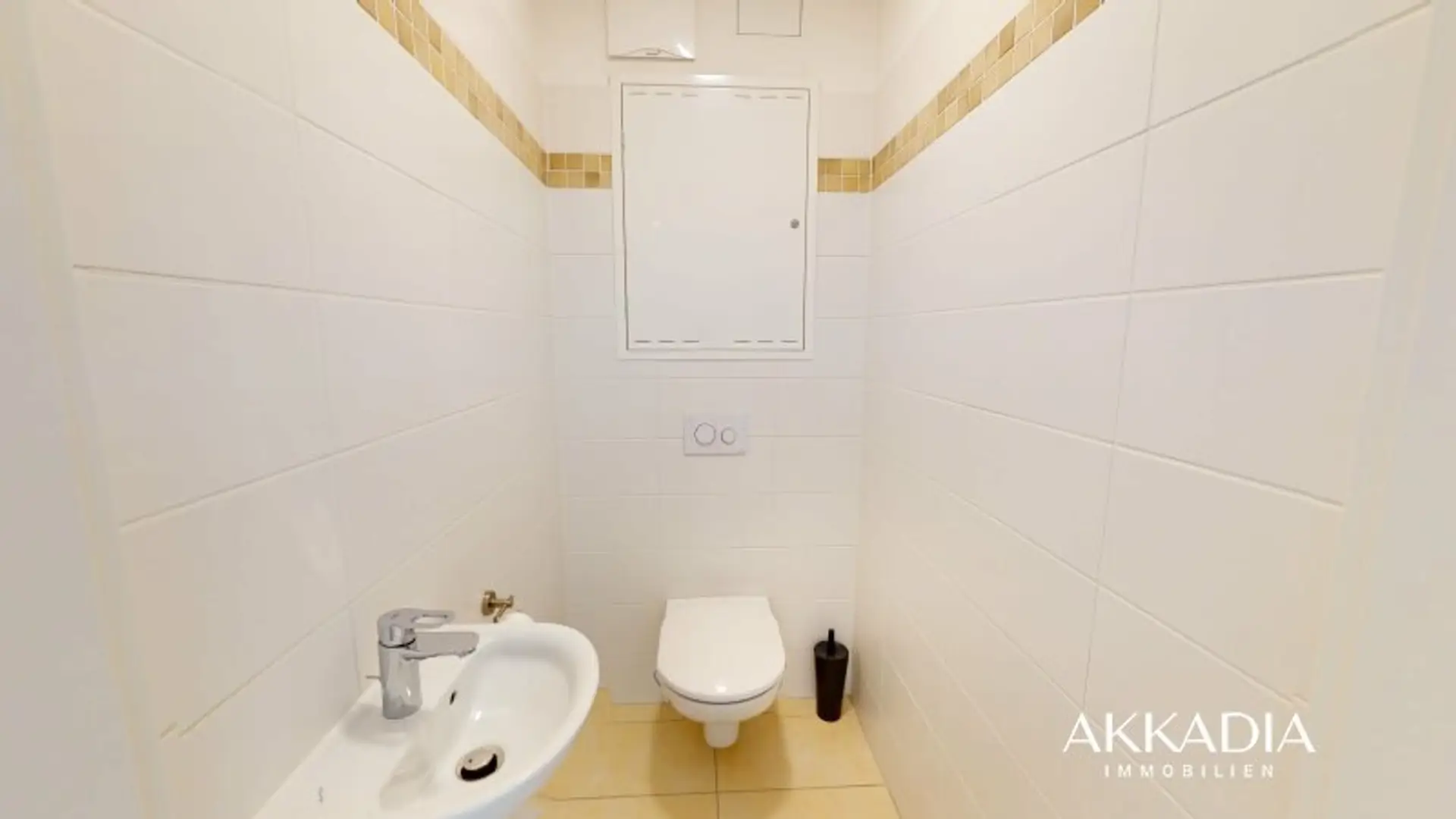 Beim Betreten der Wohnung befindet man sich im Vorzimmer, von welchem aus man die Möglichkeit hat, alle Zimmer zentral zu begehen. Die Wohnung ist sehr gut belichtet und verfügt über ein großes Wohnzimmer inklusive Wohnküche. Bei Bedarf ist der Raum ideal trennbar und es kann somit ein weiteres Zimmer mit wenig Aufwand geschaffen werden. Wohn- und Schlafzimmer sind durch breite Fenster geprägt, welche einen schönen Blick über den 16. Bezirk ermöglichen. Das offene und helle Ambiente runden das harmonische Konzept ab und machen die Wohnung zu einer Wohlfühloase über den Dächern Wiens.