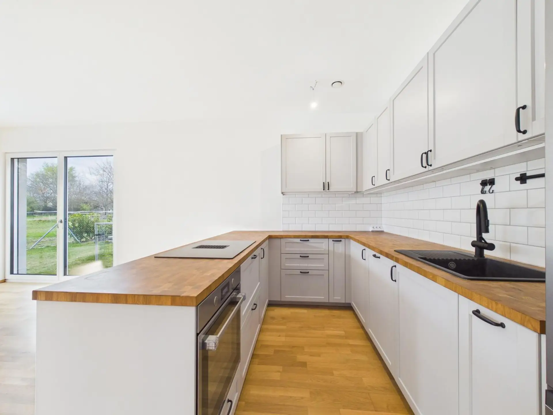 Diese moderne Doppelhaushälfte überzeugt durch eine durchdachte Raumaufteilung, hochwertige Bauweise und energieeffiziente Technik. Der großzügige Wohn- und Essbereich mit offener Küche bildet das Herzstück des Hauses und bietet direkten Zugang zum Garten mit freiem Grünblick. Große Fensterflächen sorgen für helle, freundliche Räume und ein angenehmes Wohngefühl.