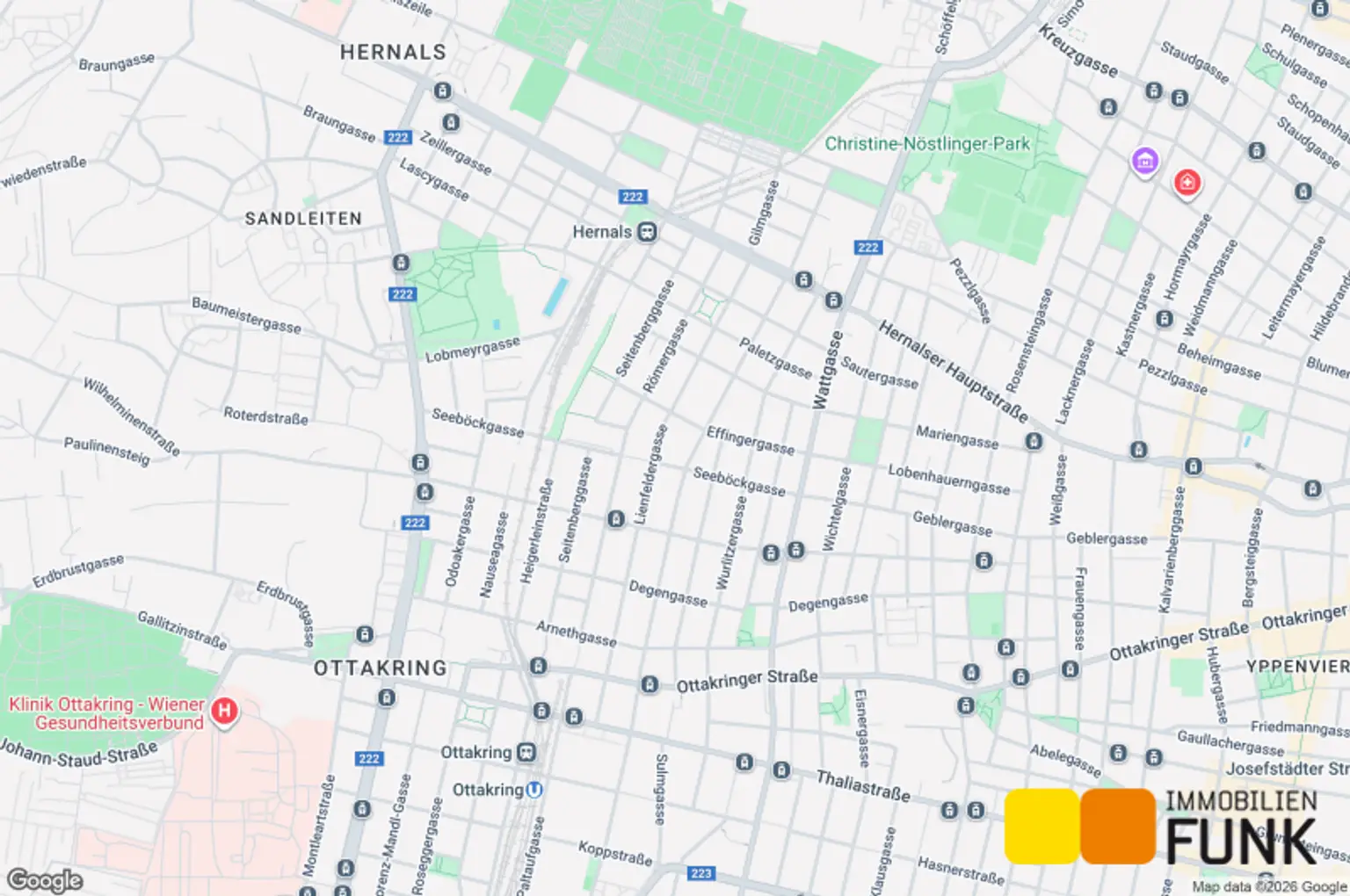 Die Liegenschaft befindet sich im 16. Wiener Gemeindebezirk in der ruhigen Wurlitzergasse und überzeugt durch eine ausgezeichnete Infrastruktur. Kinderbetreuungseinrichtungen, Schulen sowie zahlreiche Geschäfte des täglichen Bedarfs liegen in unmittelbarer Nähe. Supermärkte wie Spar, Lidl und Billa sind bequem in nur etwa drei Gehminuten erreichbar.