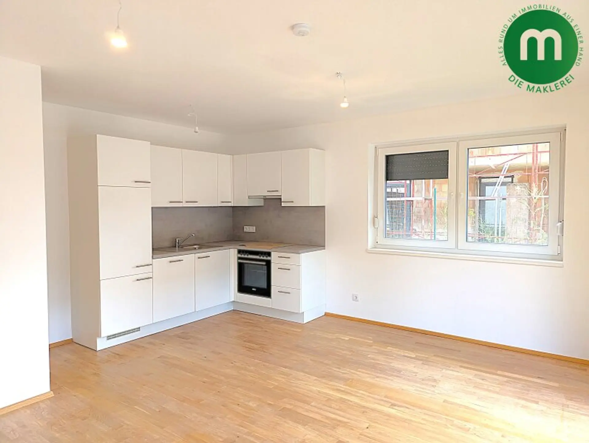 Die Wohnung befindet sich im Erdgeschoss eines 2025 fertiggestellten Hauses und besticht durch einen hellen Wohn- und Schlafbereich mit direktem Zugang zu einer großzügigen Terrasse sowie einem privaten Garten von ca. 51 m² – perfekt, um warme Tage im Freien zu genießen. Die vollausgestattete Einbauküche mit modernen Geräten ist offen in den Wohnraum integriert und schafft ein gemütliches Ambiente. Das Badezimmer verfügt über ein Fenster, ist mit einer Dusche und einem WC ausgestattet und präsentiert sich ebenso modern wie funktional. Hochwertige Parkett- und Fliesenböden, eine Fußbodenheizung sowie mehrfach verglaste Fenster sorgen für Wohnkomfort auf zeitgemäßem Niveau. Ein Kellerabteil steht ebenfalls zur Verfügung, im Haus sind ein Personenaufzug und Fahrradstellplätze vorhanden; ein Kfz-Abstellplatz ist ebenfalls anmietbar.