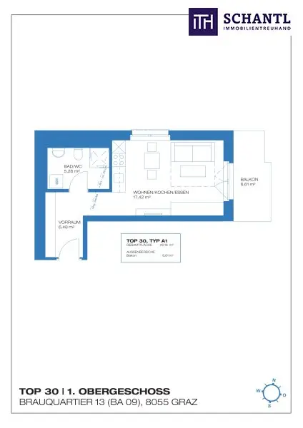 Diese stilvolle 1-Zimmer-Wohnung im 1. Obergeschoss bietet auf 29,16 m² alles, was Sie für komfortables Wohnen brauchen. Perfekt für Singles oder Anleger! Genießen Sie den lichtdurchfluteten Wohnbereich mit integrierter Küche und entspannen Sie auf dem großzügigen Balkon mit West-Ausrichtung. Hochwertige Ausstattung, effiziente Heiztechnik und ein attraktives Preis-Leistungs-Verhältnis machen diese Immobilie zu einer echten Gelegenheit.