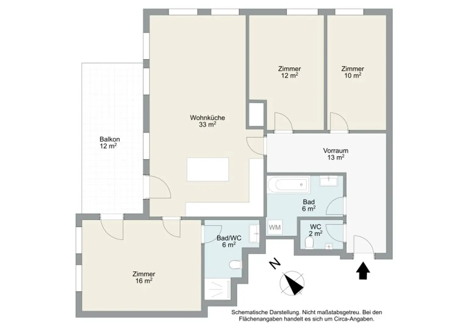 Zwei gut geschnittene Zimmer mit ca. 10 m² und 12 m² bieten flexible Nutzungsmöglichkeiten – ob als Kinderzimmer, Homeoffice oder Gästezimmer.