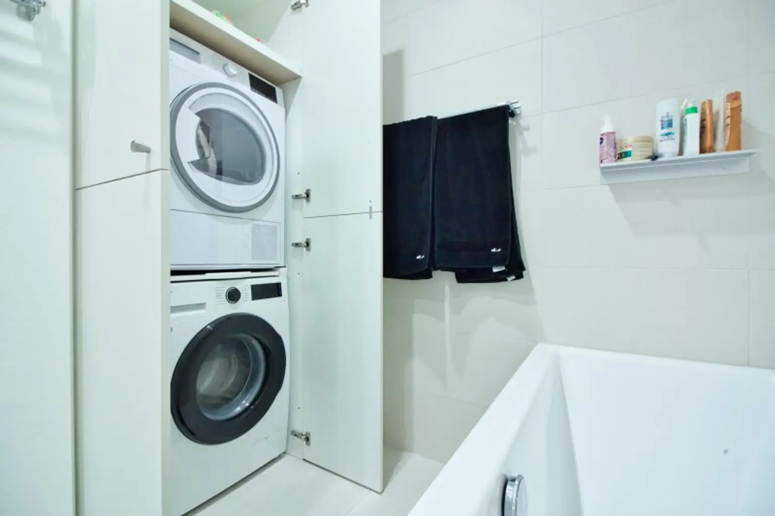 * Badezimmer mit Waschtisch, Waschmaschinenanschluss & Badewanne