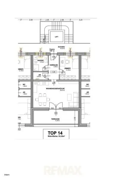 53,32 m²
