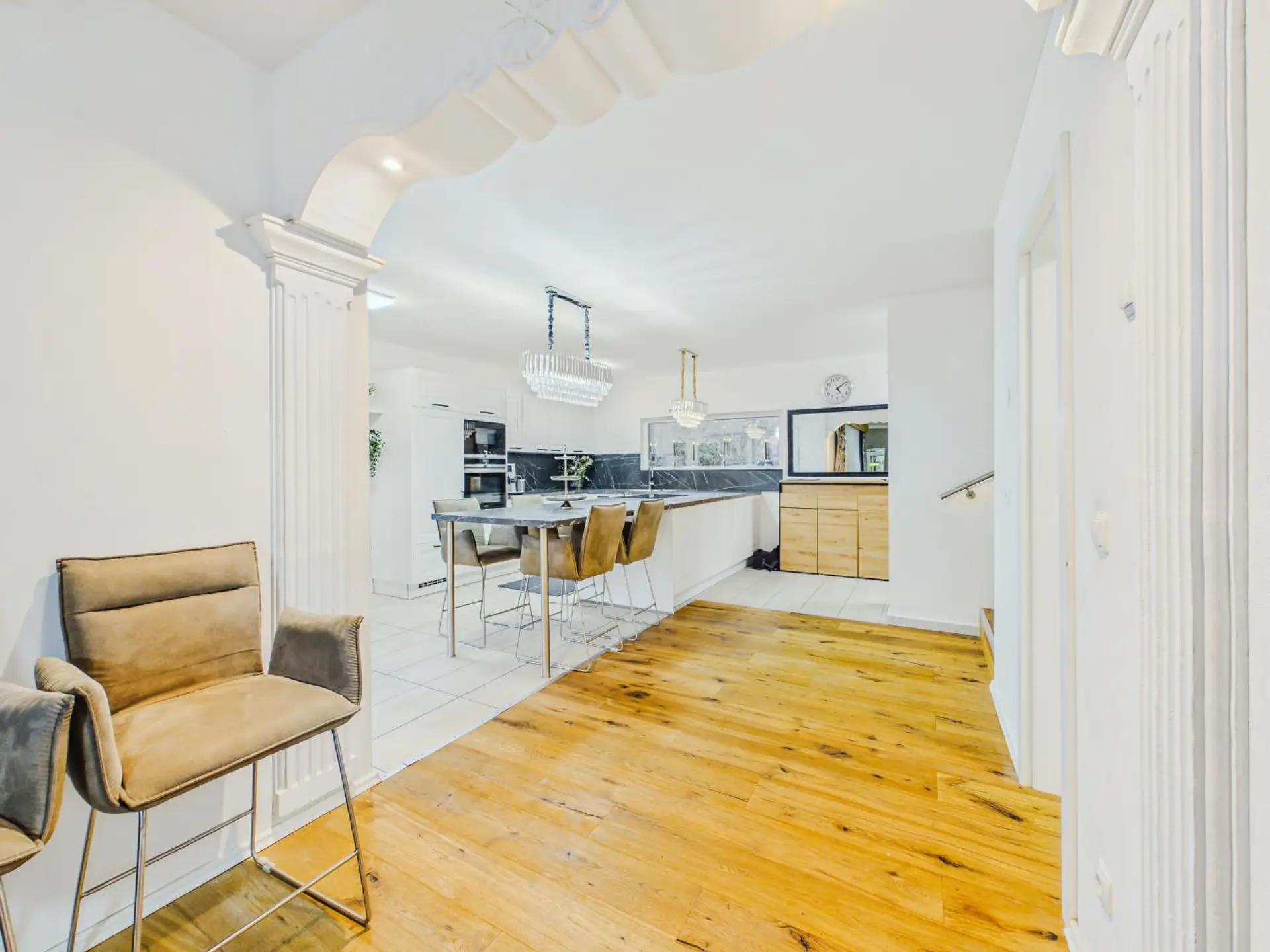 Schon beim Betreten des Hauses spürt man die Großzügigkeit dieser Immobilie. Helle Räume, große Fensterflächen und eine offene Gestaltung schaffen ein modernes und gleichzeitig sehr wohnliches Ambiente.