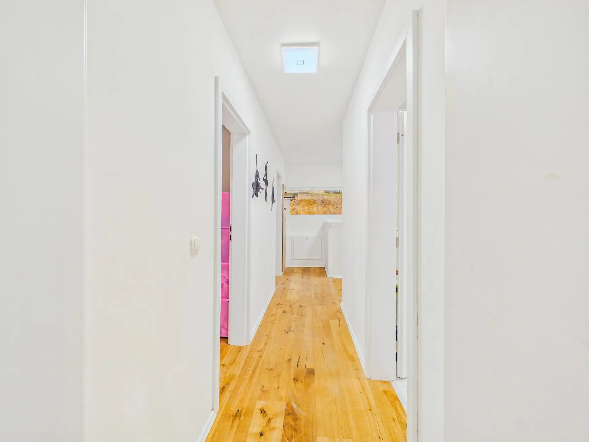 Hier befinden sich zwei große Kinderzimmer, ein weiteres Badezimmer mit WC sowie ein Balkon.