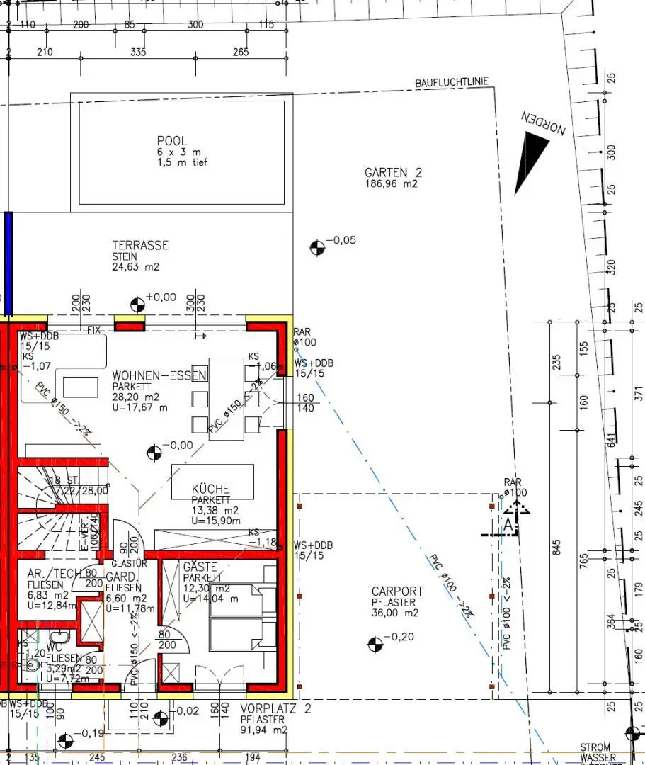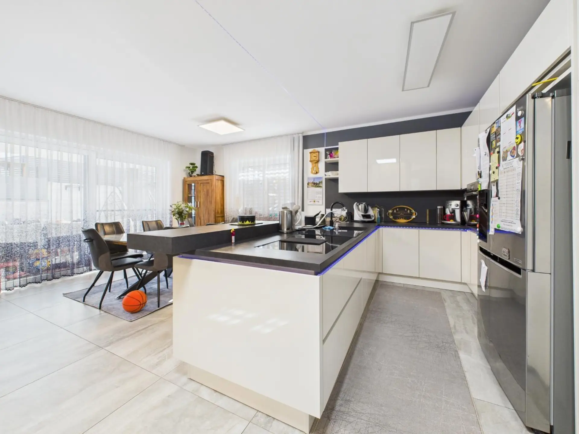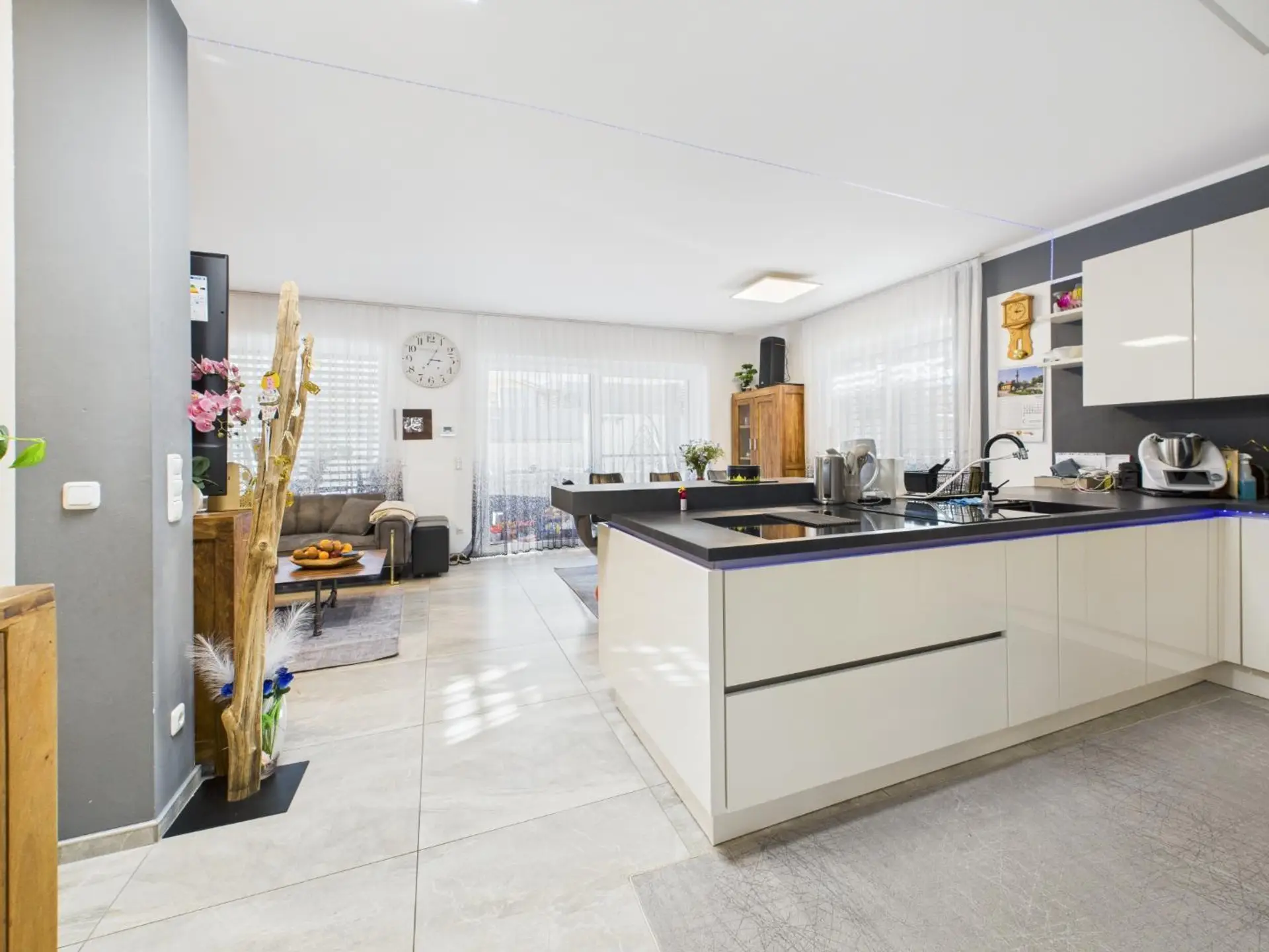 Der offene Wohnbereich im Erdgeschoss schafft eine einladende Atmosphäre, in der sich die ganze Familie wohlfühlen kann. Große Fenster lassen viel Licht herein und eröffnen den Blick in den schönen Garten, der sich ideal für entspannte Stunden oder zum Spielen der Kinder eignet. Die offene Gestaltung verbindet Wohnzimmer, Essbereich und Küche auf harmonische Weise und fördert so den Familienzusammenhalt. Im Erdgeschoss finden Sie außerdem ein Gästezimmer/Büro und ein Gäste-WC.