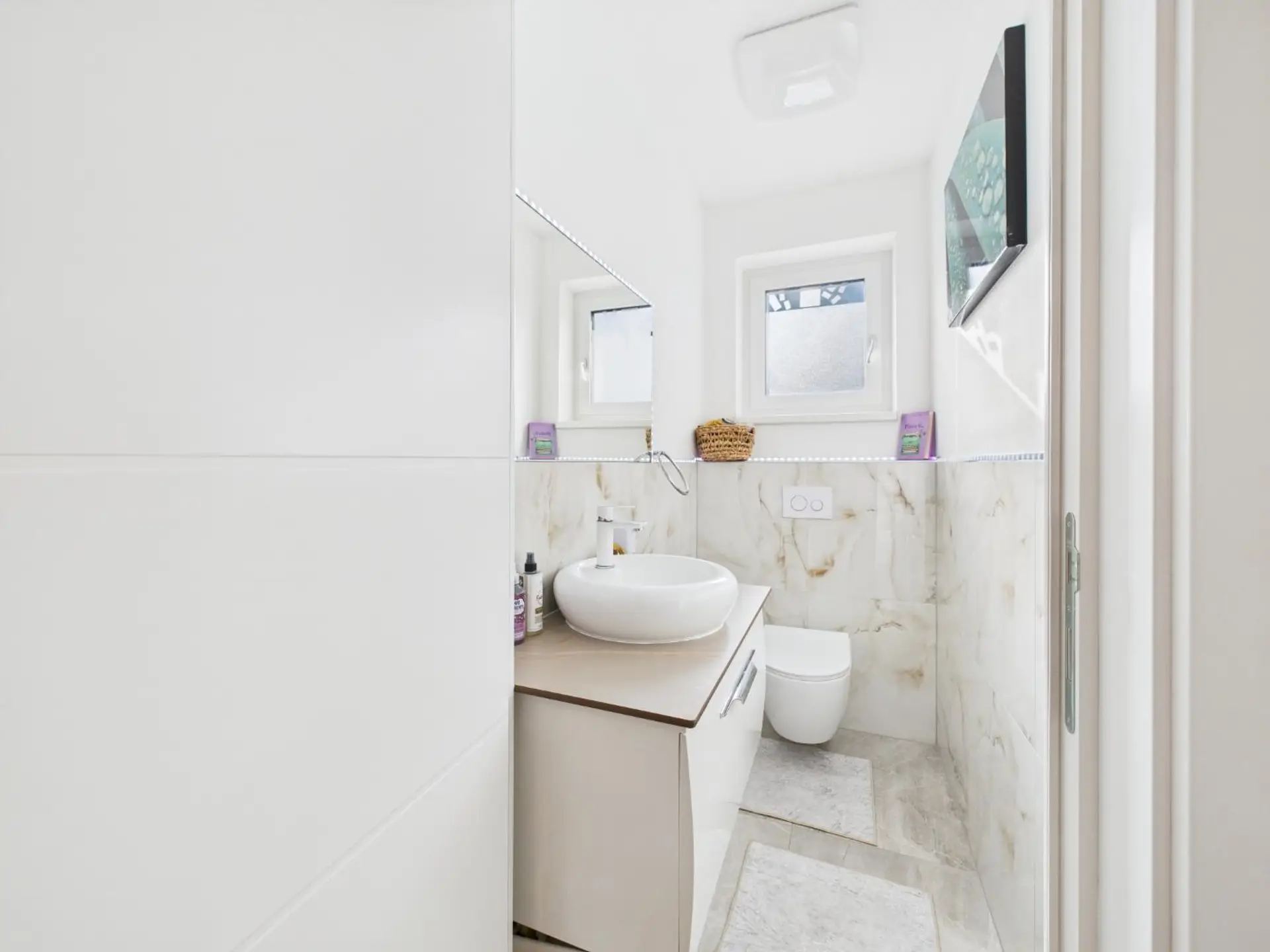 Dieses Zuhause befindet sich auf dem neuesten Stand der Technik und bietet eine Ausstattung, auf dem neuesten Stand der Technik. Beheizt wird das Haus energieeffizient über eine Vaillant Luftwärmepumpe, kombiniert mit Fußbodenheizung, die in allen Räumen für ein angenehmes, gleichmäßiges Raumklima sorgt. Die hochwertigen 3-fach verglasten Fenster – inklusive Insektenschutz (und elektrischen Raffstore im EG, sowie elektrischen Rolläden im OG) – bieten hervorragende Dämmwerte und tragen zu niedrigen Energiekosten bei.