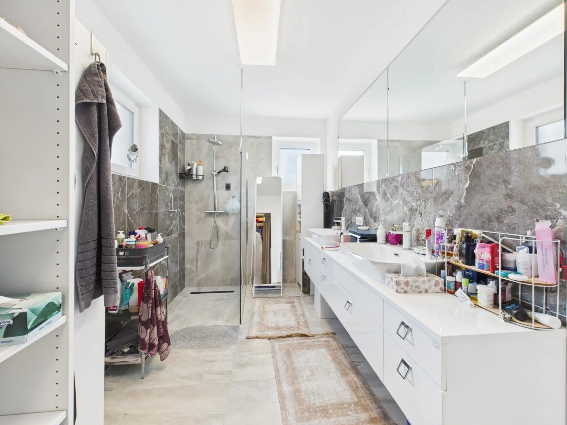 Im Obergeschoss finden Sie drei großzügige Schlafzimmer, die ausreichend Platz für alle Familienmitglieder bieten. Jedes Zimmer überzeugt durch seine Helligkeit und Vielseitigkeit – sei es als Kinderzimmer, Arbeitszimmer oder Rückzugsort. Zwei moderne Badezimmer sorgen für zusätzlichen Komfort und bieten genügend Platz für die morgendliche Routine der ganzen Familie.