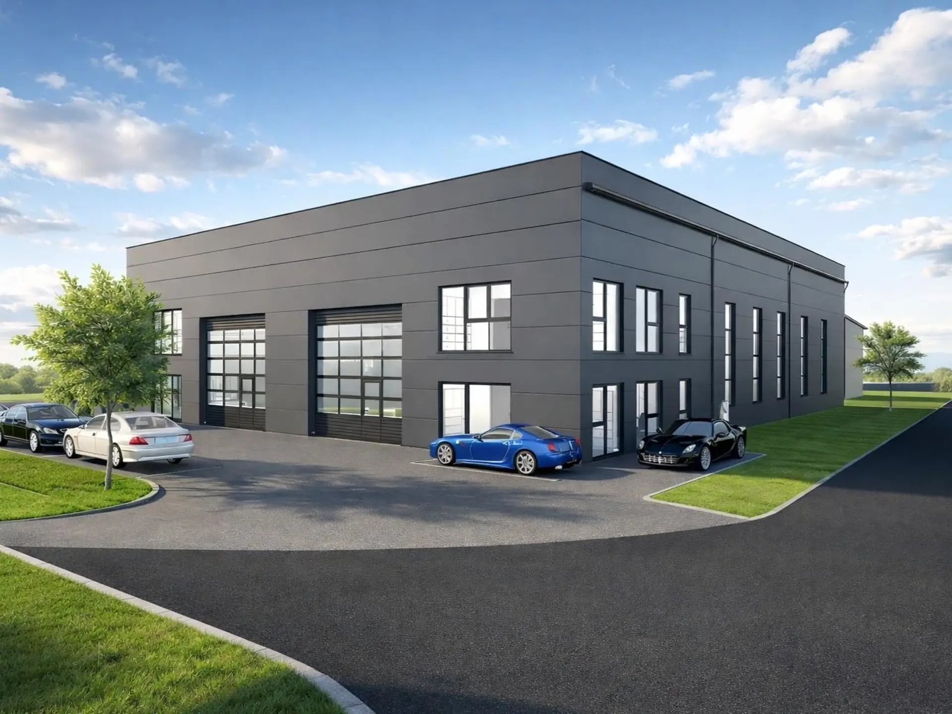 - Neubauhalle bestehend aus drei Teilen