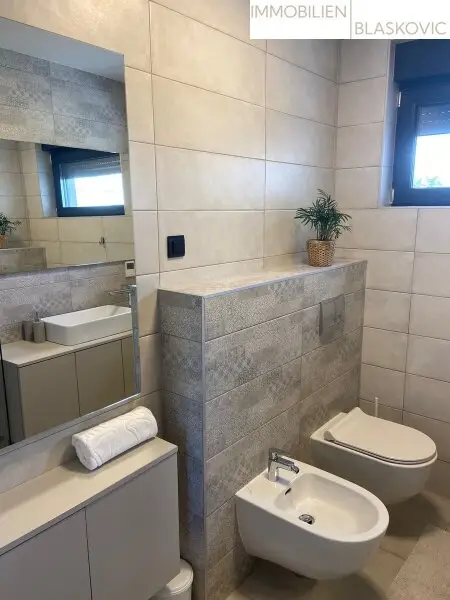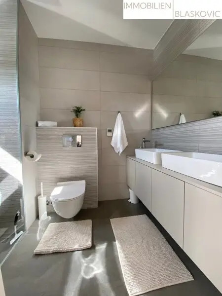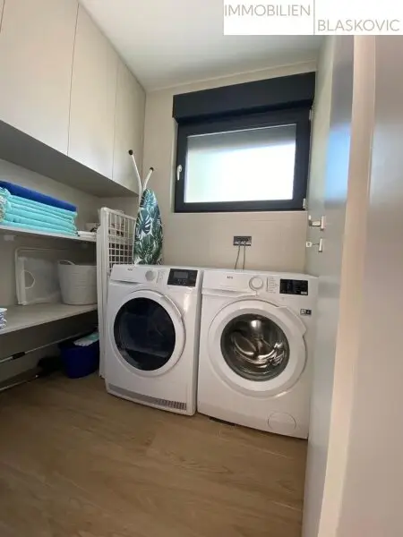 Ebenso befinden sich im Erdgeschoss eine Toilette, eine Waschküche, ein Schlafzimmer, ein Badezimmer sowie ein Abstellraum und der Heizraum (Erdgeschoss netto 129,04 m2).