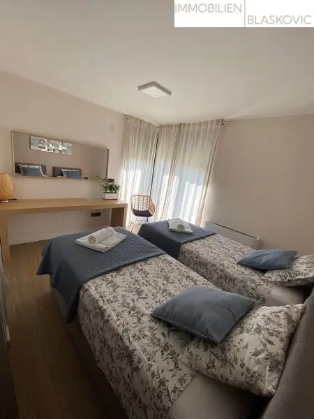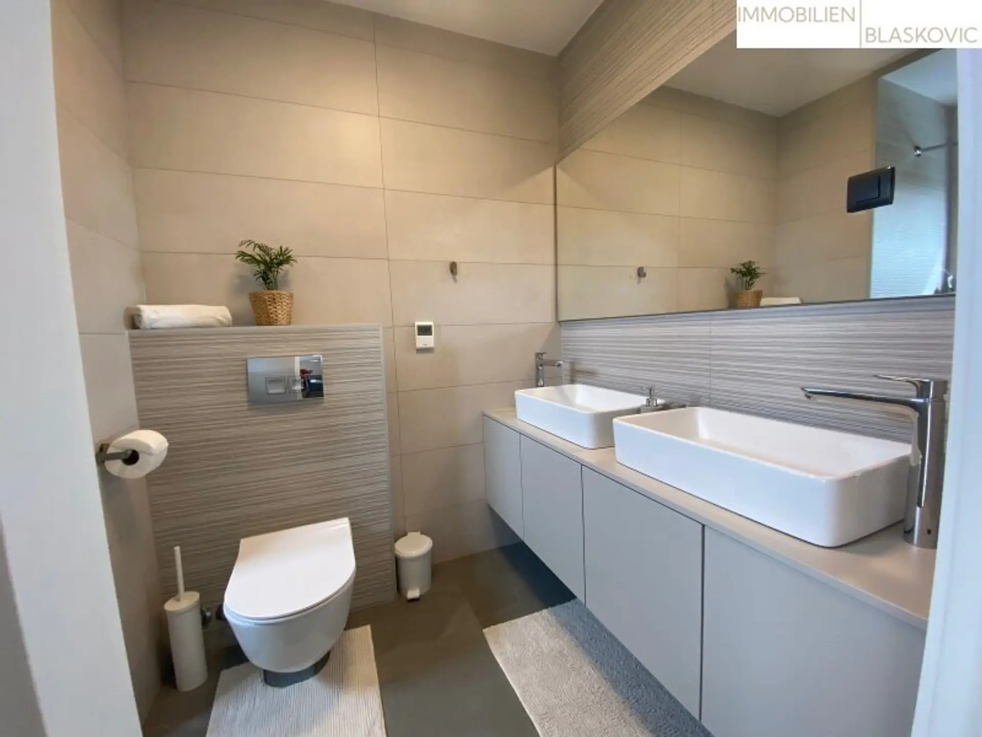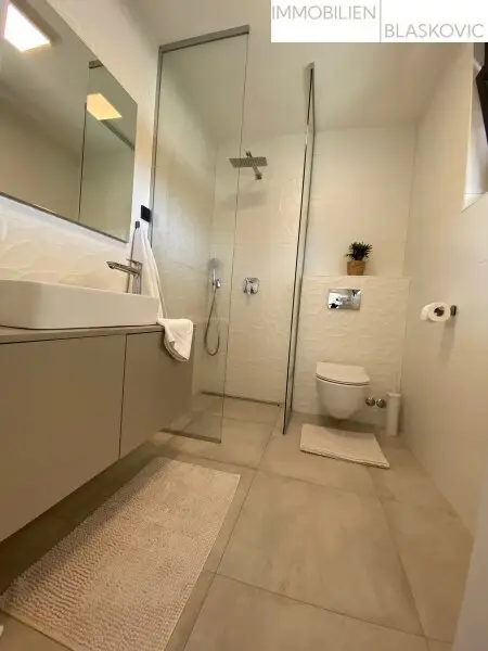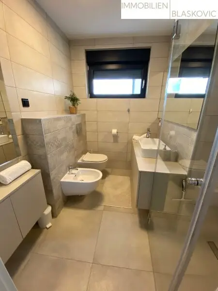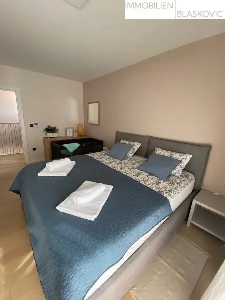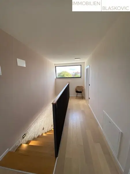 Der erste Stock verfügt über drei Schlafzimmer, jedes Zimmer hat sein eigenes Bad und eine traumhaft schöne, große Terrasse (insgesamt netto 72,34 m2).