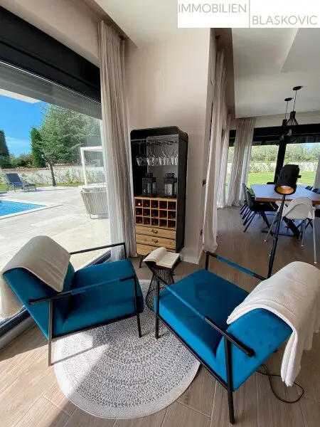 Dieses wunderschöne, moderne und freistehende Haus mit Pool und Outdoorküche wurde 2015 in ruhiger Lage in der Nähe von Porec (ca. 10 km), in unmittelbarer Nähe zum entzückenden Örtchen Visnjan gebaut.