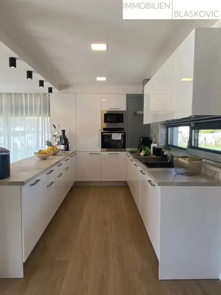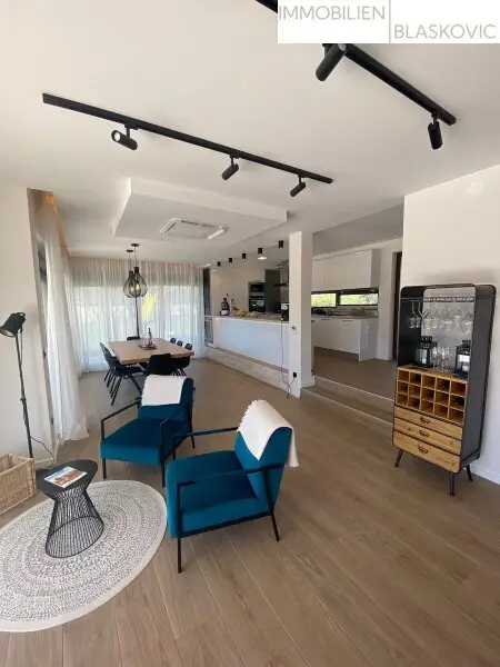 Bei dieser großzügig gebauten Villa ergibt sich durch modernstes Design sowie hochwertigste Materialien und Interieur ein einladendes Wohnkonzept.