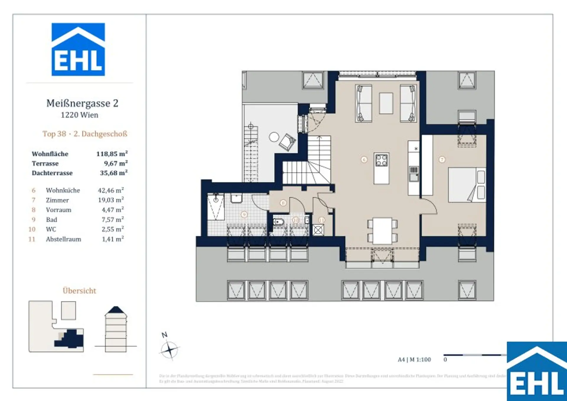 * Dachgeschoß gültig bis 18.09.2032: HWB 18,0 kWh/m²a, Klasse A ; fGEE: 0,70 Klasse A+