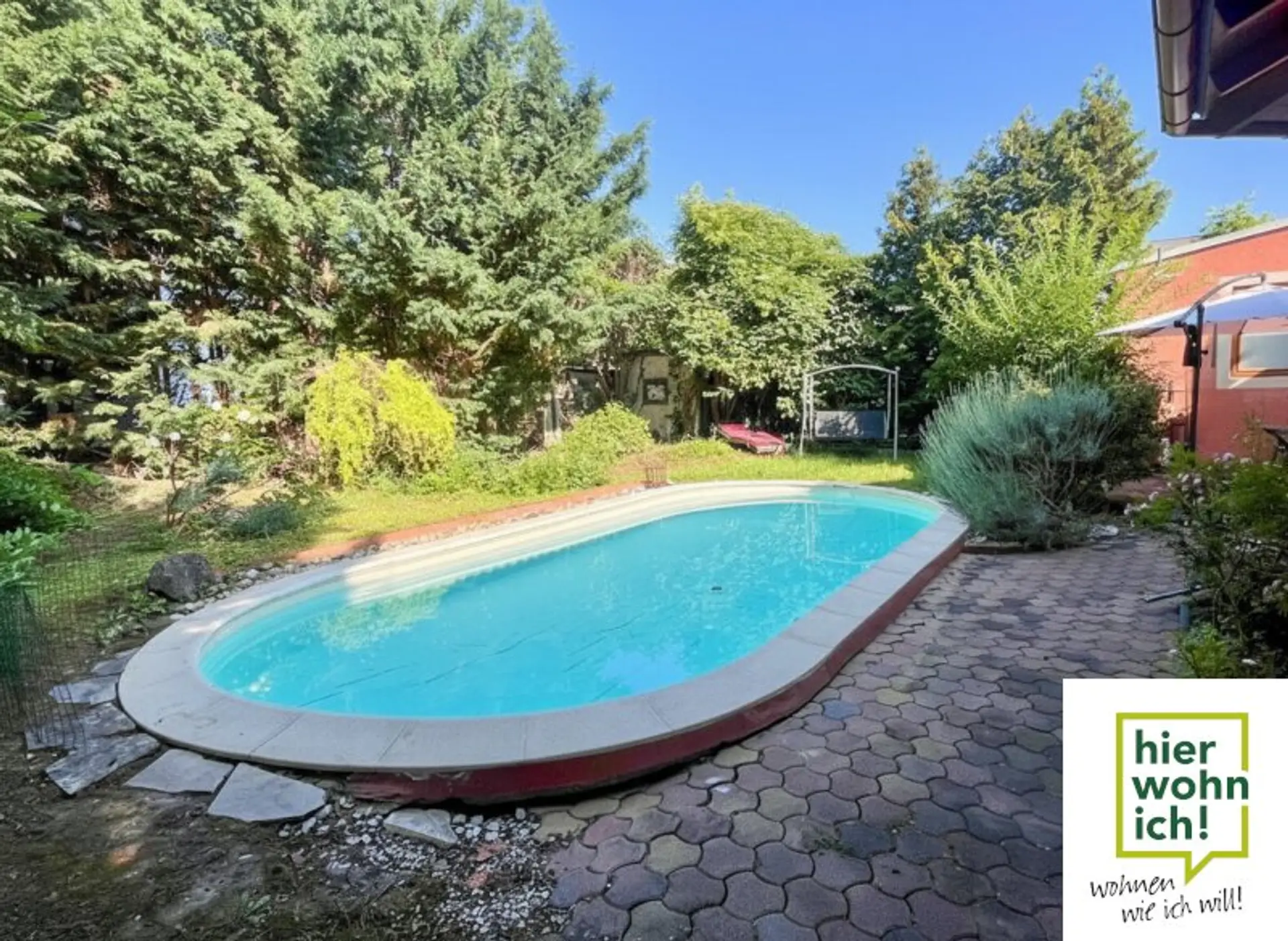 Ihre private Bade-Oase: Eingebettet, fast wie bei einer Waldlichtung, bildet der Swimmingpool mit einer Größe von 7,37 x 3,60 das Herzstück des Gartens und bietet herrliche Abkühlung an heißen Sommertagen-hier genießen Sie den Sommer in vollen Zügen.