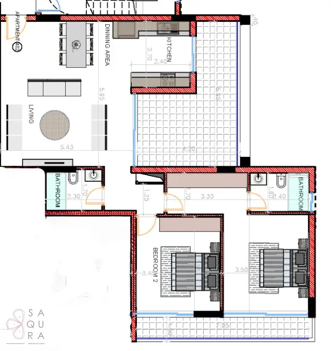 Detalji stana 402 – 2 spavaće sobe