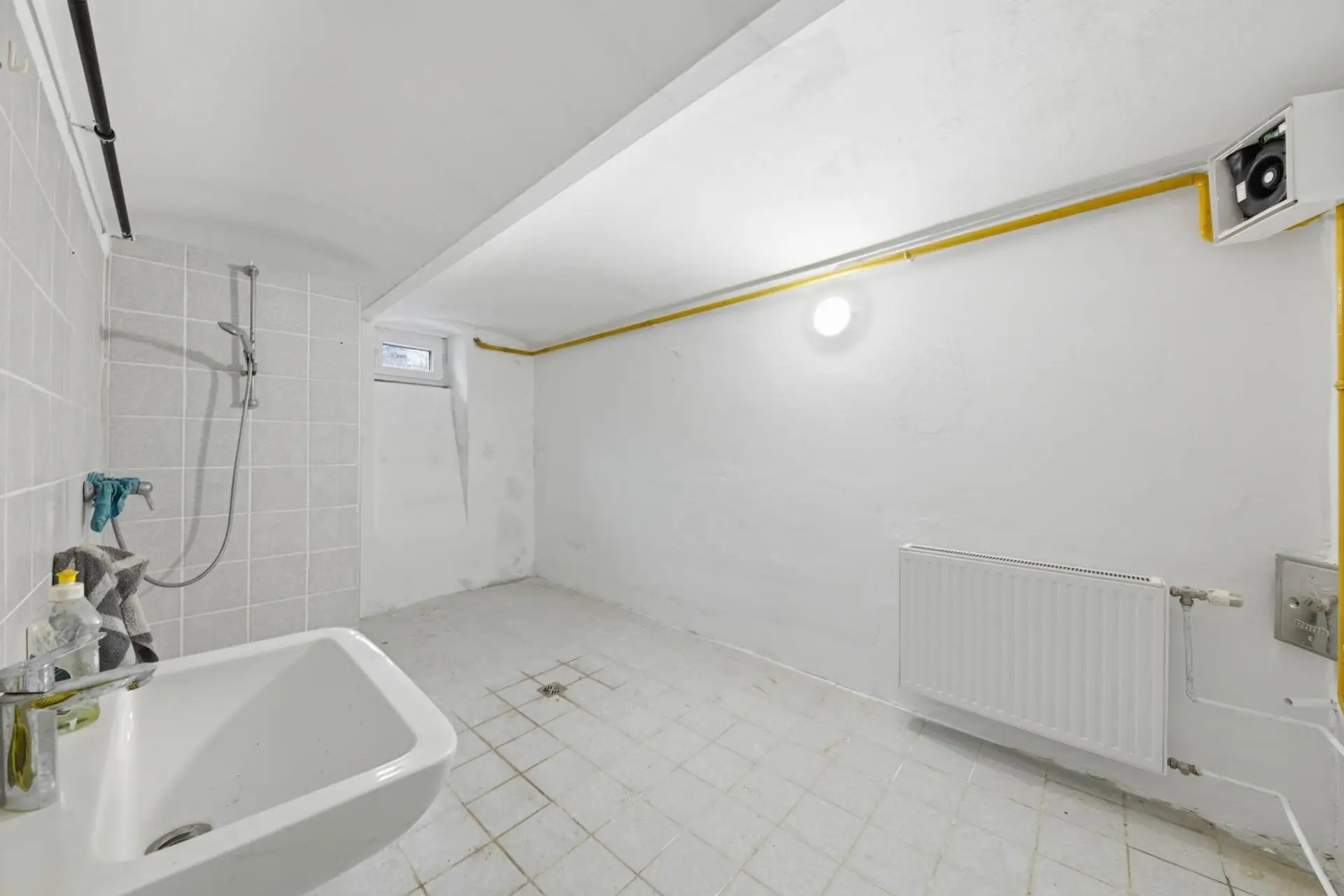 Zwei Räume, Waschküche, Dusche, Ausgang zum Innenhof