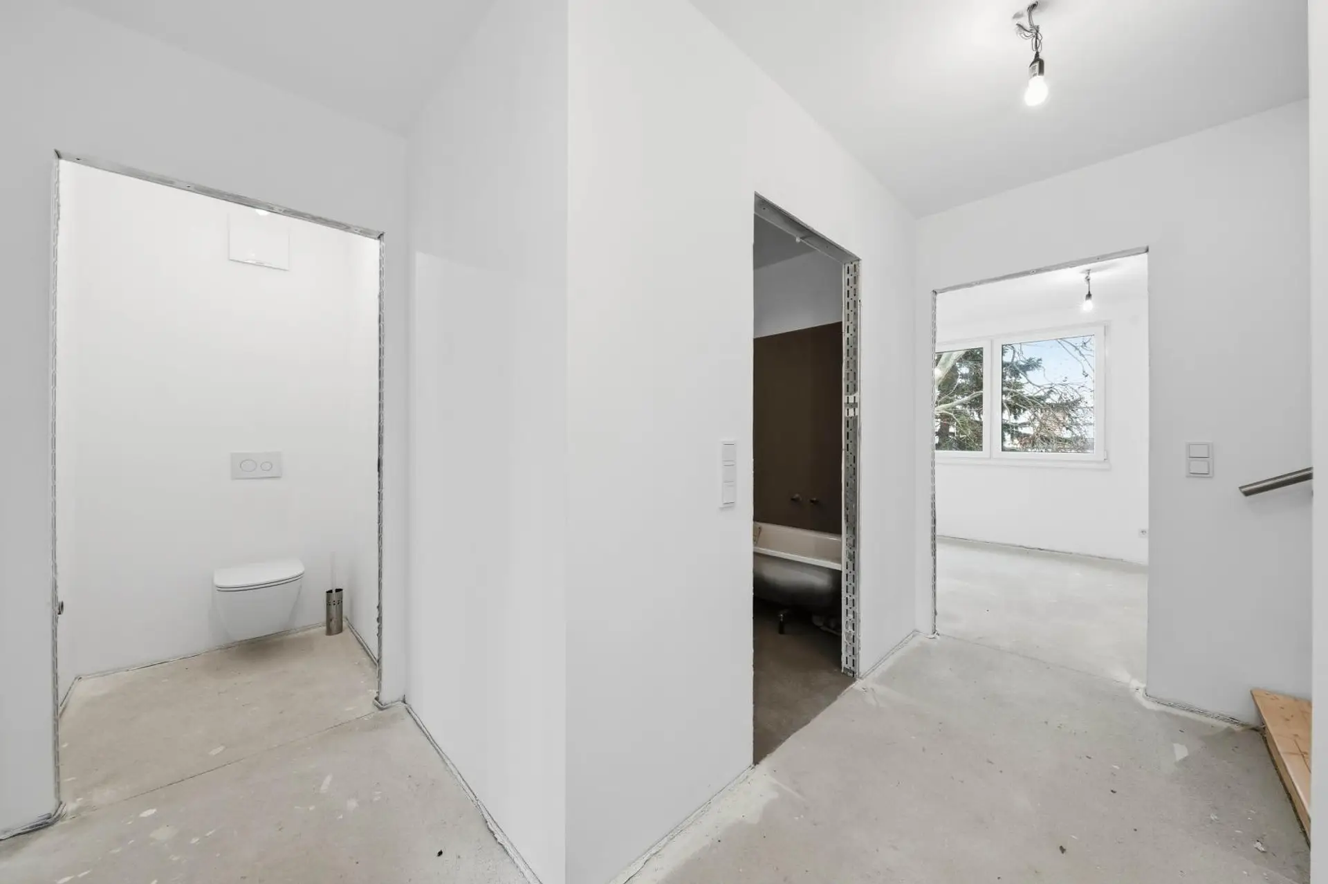 Stiegenaufgang, Flur, drei Schlafzimmer, Badezimmer, Toilette