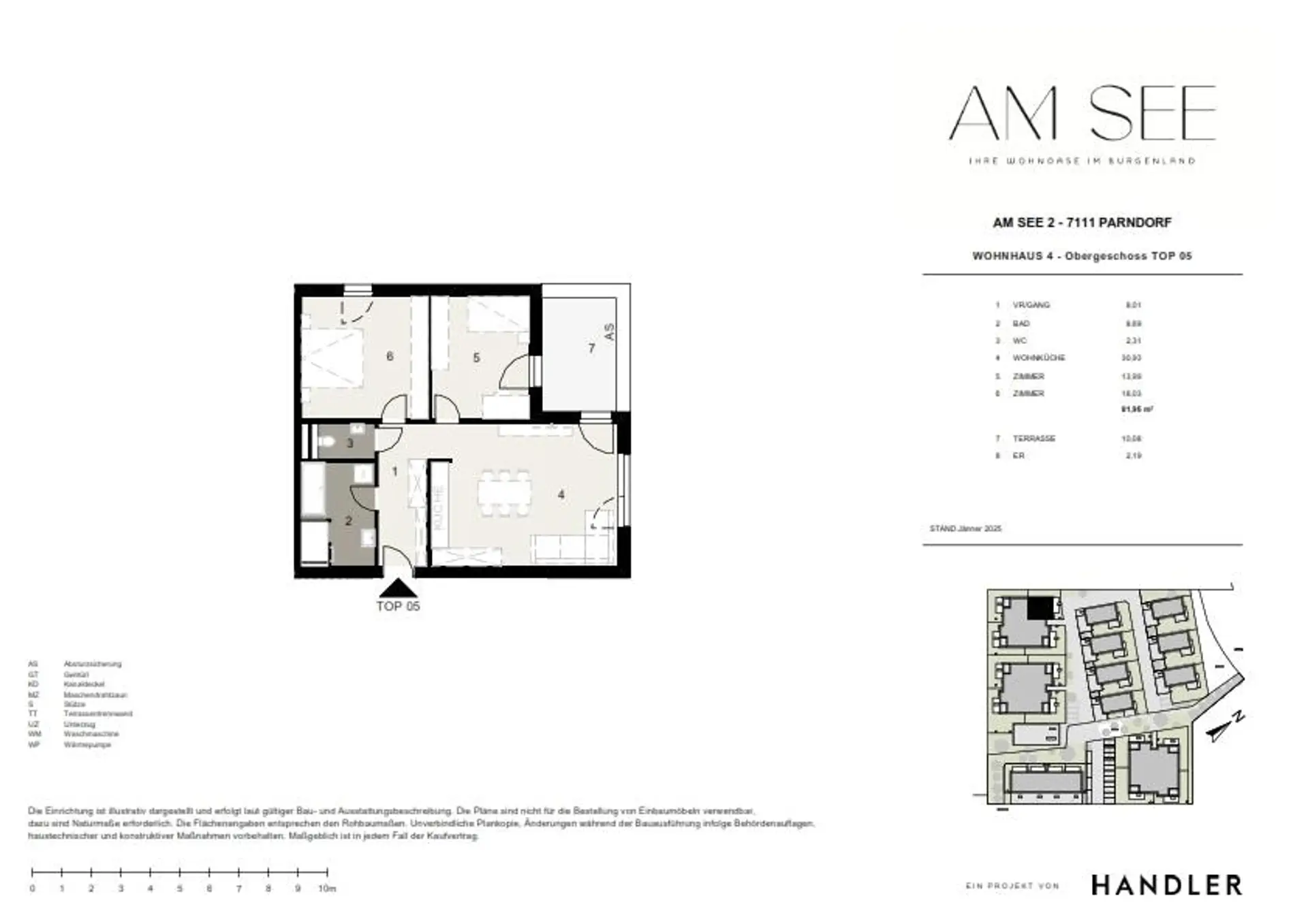 Das Projekt Wohnen am See liegt in idyllischer Ruhelage am östlichen Ortsrand von Parndorf, nur wenige Schritte vom See entfernt. Eingebettet in großzügige Grünflächen genießen Bewohner hier naturnahes Wohnen mit hohem Freizeitwert. Rad- und Spazierwege führen direkt an der Anlage vorbei, während Badeseen, Sport- und Erholungsmöglichkeiten in unmittelbarer Nähe zur Verfügung stehen.Gleichzeitig überzeugt die Lage durch ihre ausgezeichnete Verkehrsanbindung: Über die A4 und A6 ist Wien in rund 30 Minuten erreichbar, der Flughafen Wien-Schwechat in etwa 25 Minuten. Das Designer Outlet Parndorf sowie zahlreiche Einkaufsmöglichkeiten, Schulen und Kindergärten befinden sich im nahen Umfeld.So verbindet Wohnen am See das Beste aus beiden Welten – entspanntes Wohnen im Grünen und die schnelle Erreichbarkeit der Stadt.