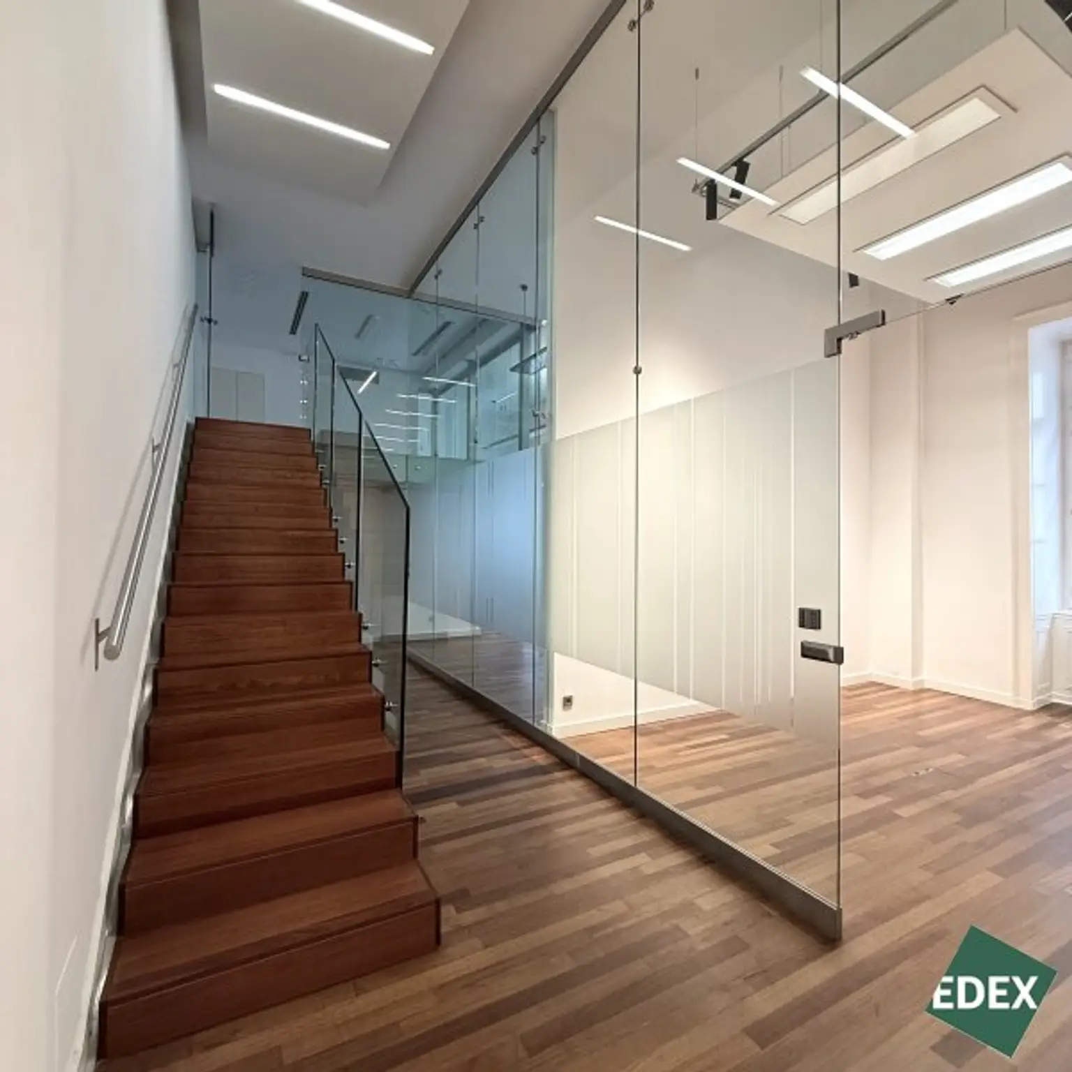 Das Objekt verfügt über einen Vorraum, eine sanierte Küche, zwei sanierte WC-Einheiten und zwei Abstellräume, sowie insgesamt 4 Zimmer, wobei eins davon ein Besprechungszimmer im Galeriegeschoss ist. Das Haus ist in einem makellosen Zustand und garantiert einen repräsentativen Unternehmensauftritt.