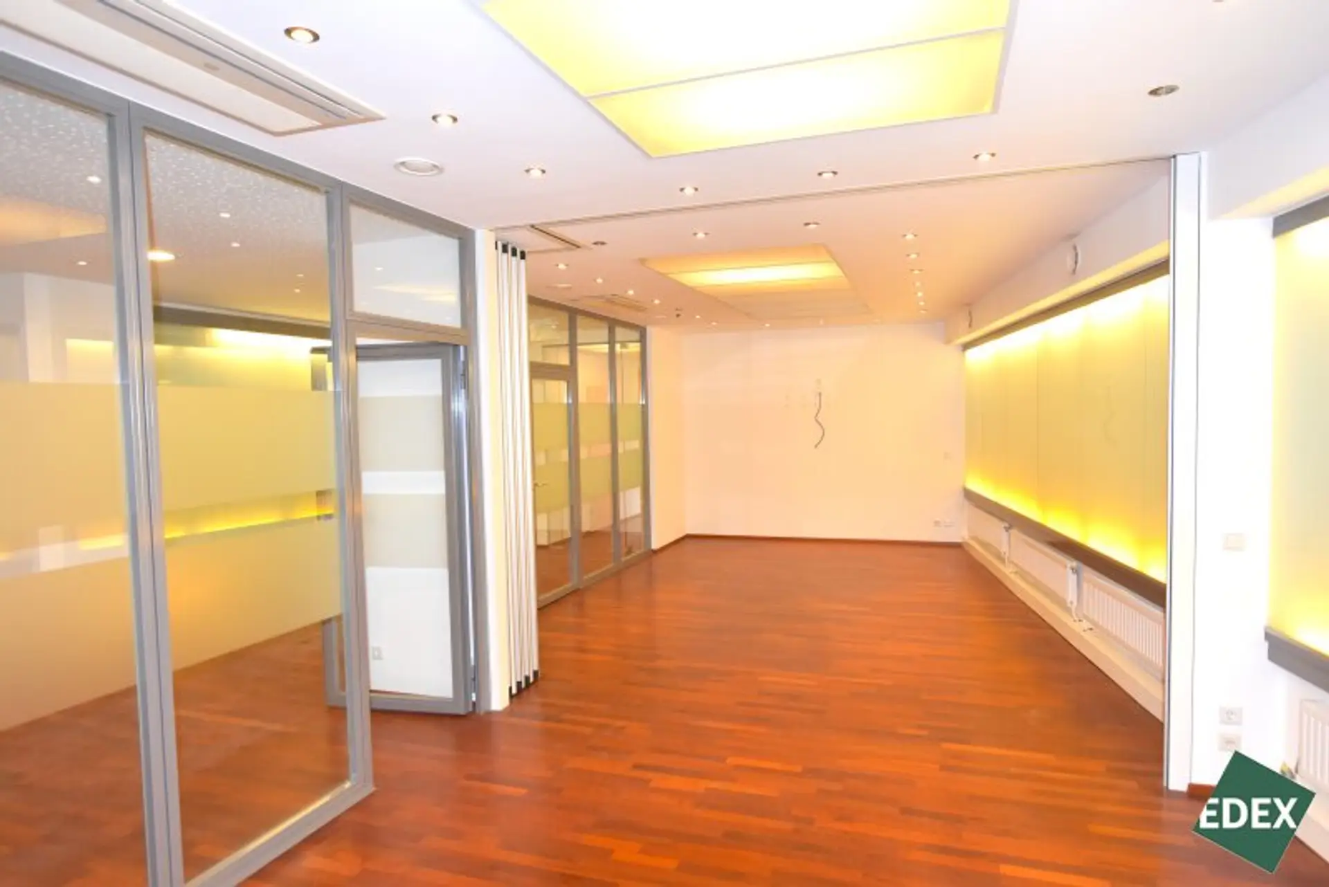 Die Fläche besteht aus sieben Büroräumen und einem Meetingraum. Der Meetingraum kann durch eine hochwertige Trennwand unterteilt werden. Eine voll ausgestattete Küche ist ebenfalls vorhanden. Eine Anmietung von Stellplätzen ist hausintern möglich.
